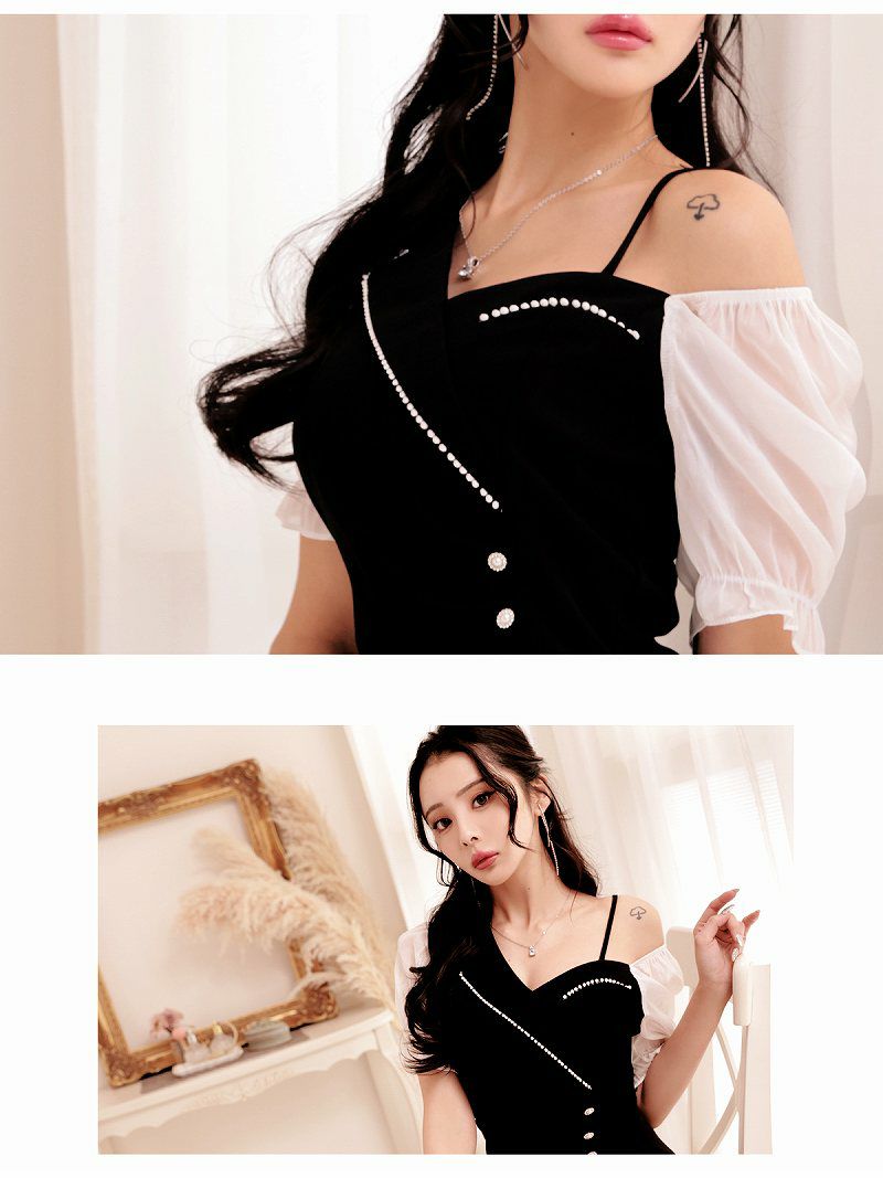 5. アシンメトリー膝丈バイカラー韓国風ワンピース KANO 着用 ラウンジワンピース【DAYS PIECE】(S/M/L/XL(2L))(ブラック) ptpl