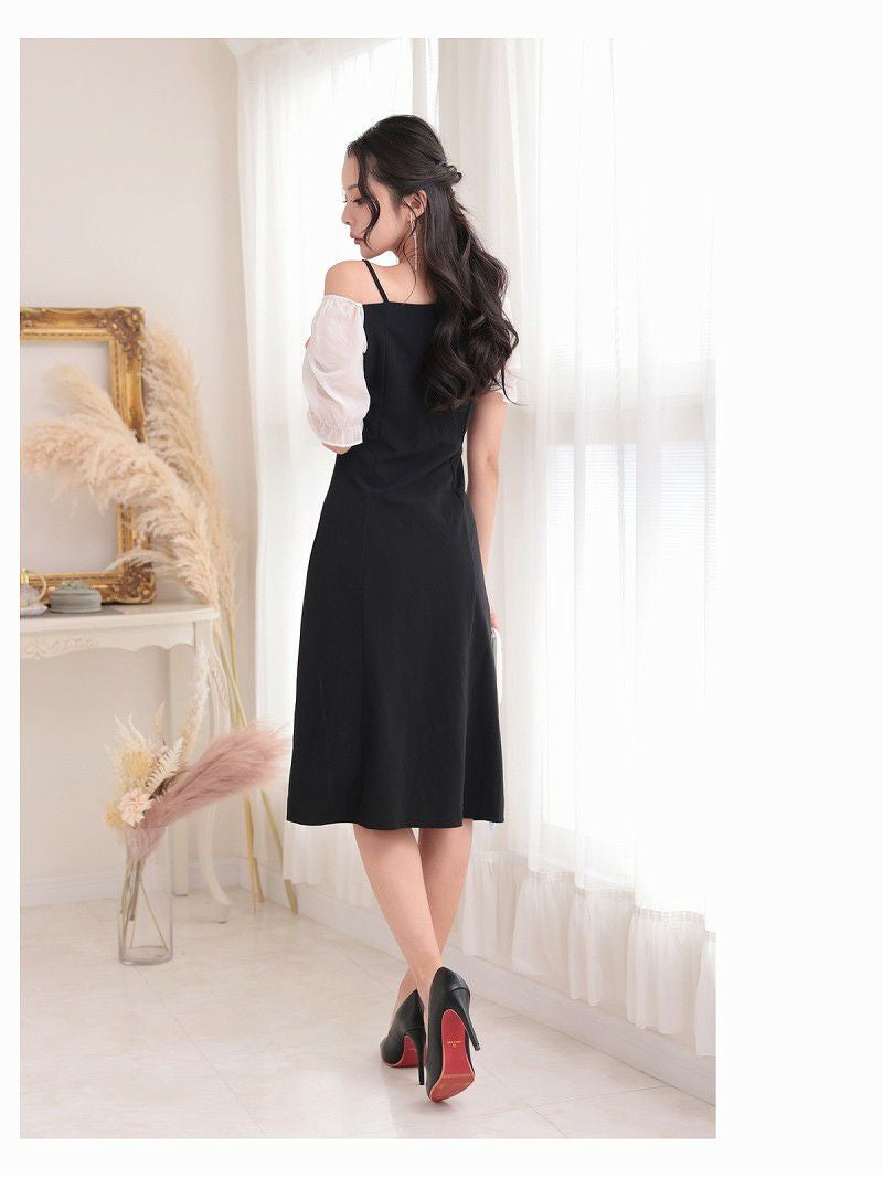 7. アシンメトリー膝丈バイカラー韓国風ワンピース KANO 着用 ラウンジワンピース【DAYS PIECE】(S/M/L/XL(2L))(ブラック) ptpl