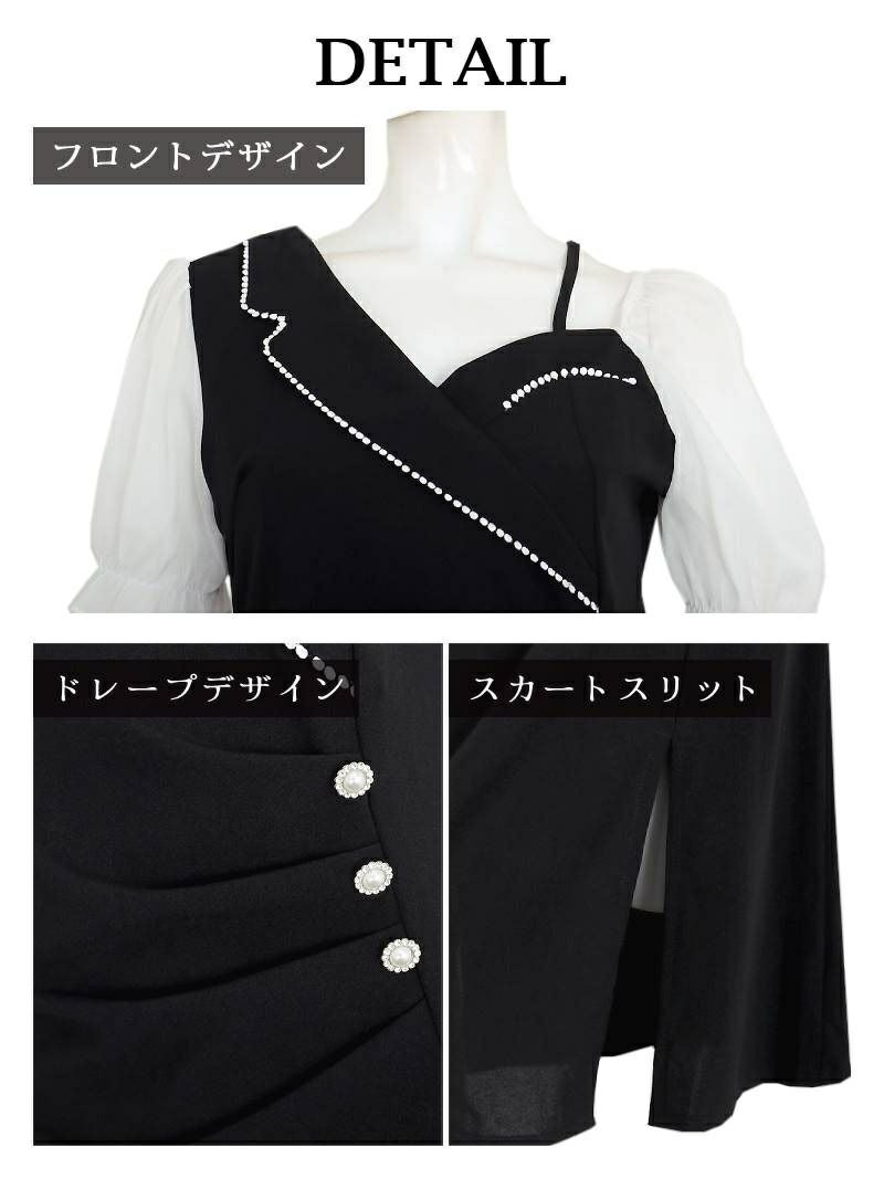 4. アシンメトリー膝丈バイカラー韓国風ワンピース KANO 着用 ラウンジワンピース【DAYS PIECE】(S/M/L/XL(2L))(ブラック) ptpl
