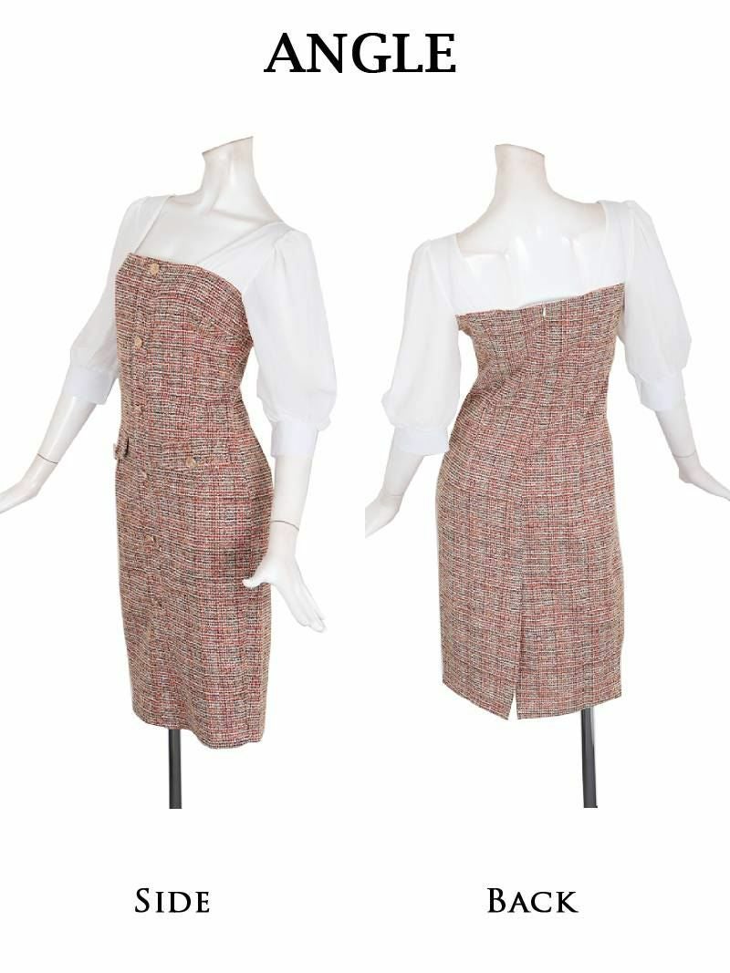 5. 先行予約割¥7980→¥7581!※一部予約販売※ラメツイードシフォン袖付き韓国ワンピース KANO 着用 大人ワンピース【DAYS PIECE】(S/M/L/XL(2L))(ピンク)