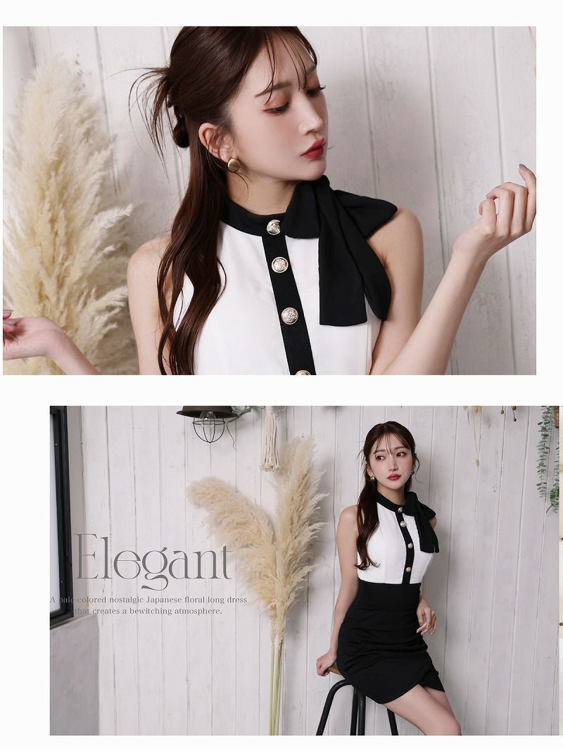 モノトーンリボンデザインタイトミニキャバドレス【Ryuyu】