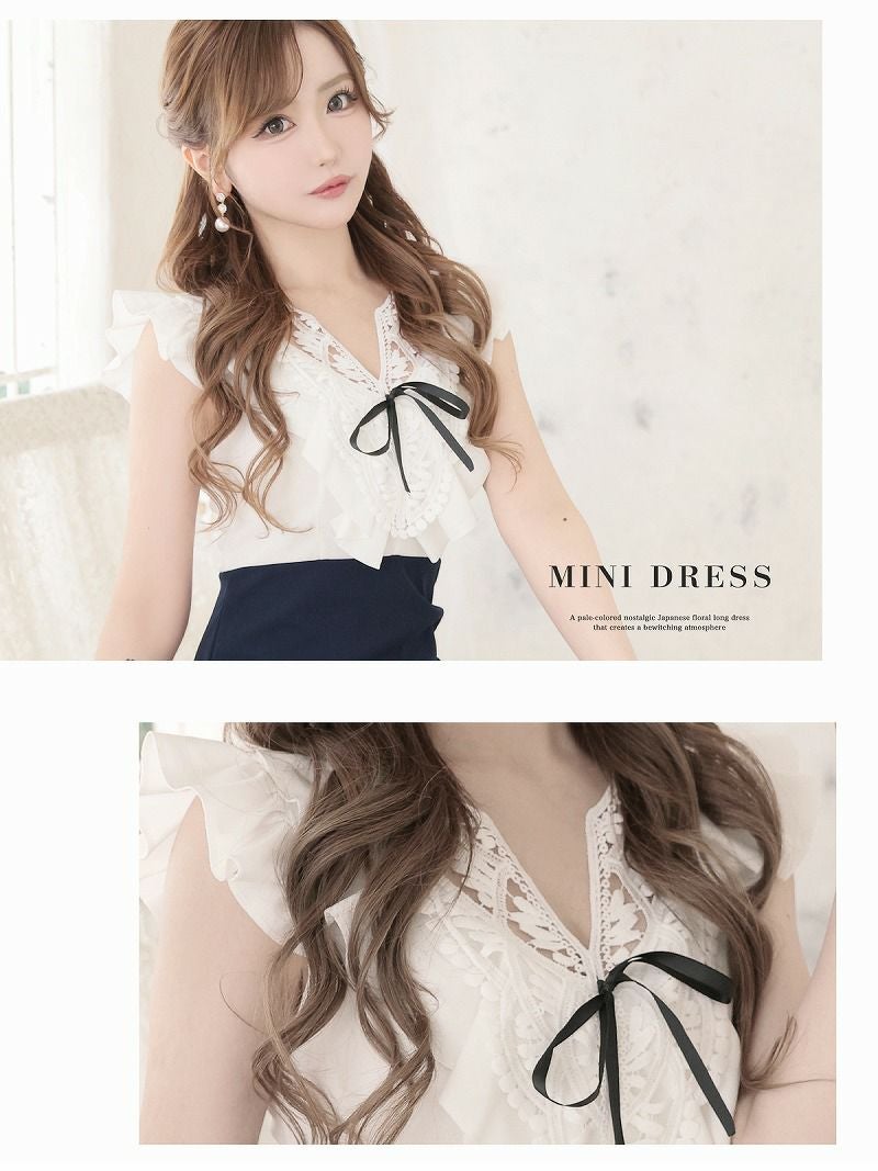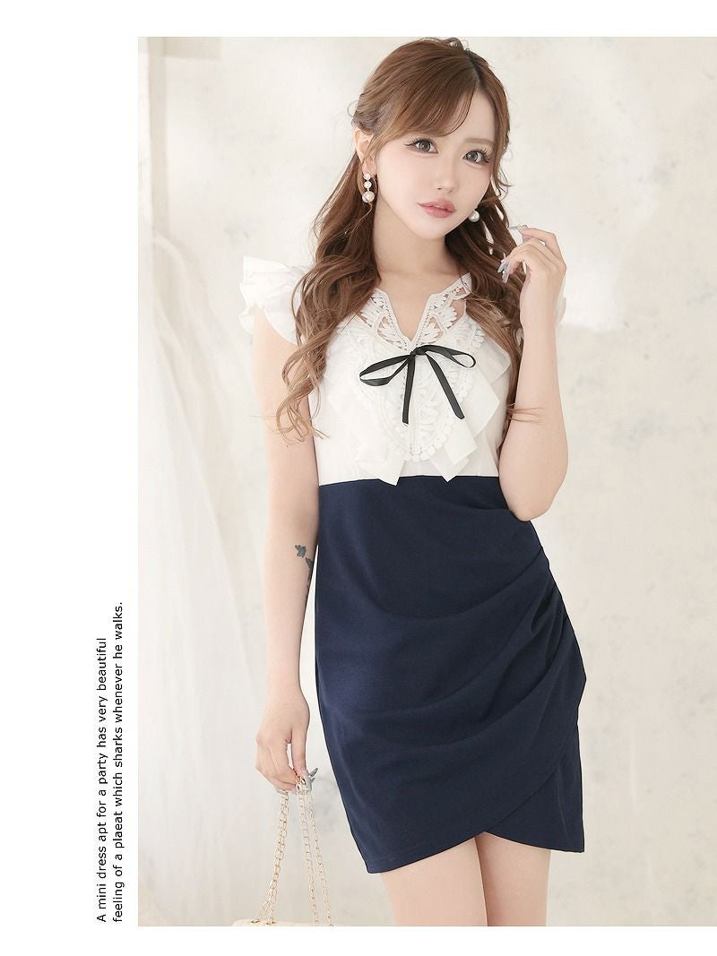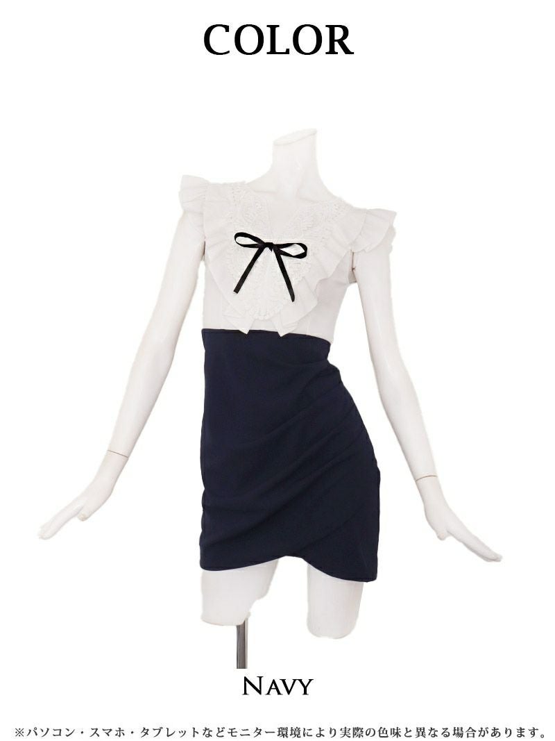 あざと可愛いマリン風バイカラーワンピース りせり 着用 キャバワンピース【RyuyuChick】