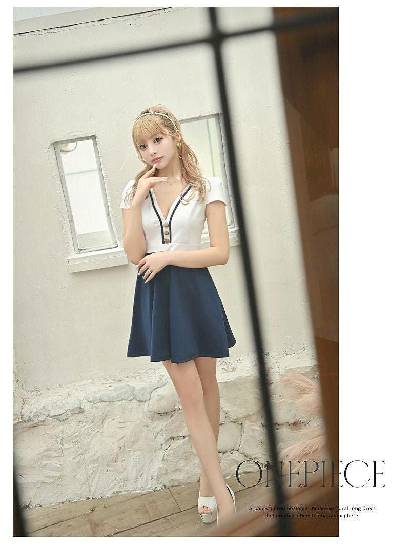 マリン風バイカラー袖付きキャバワンピース あいさ 着用 キャバドレス【RyuyuChick】