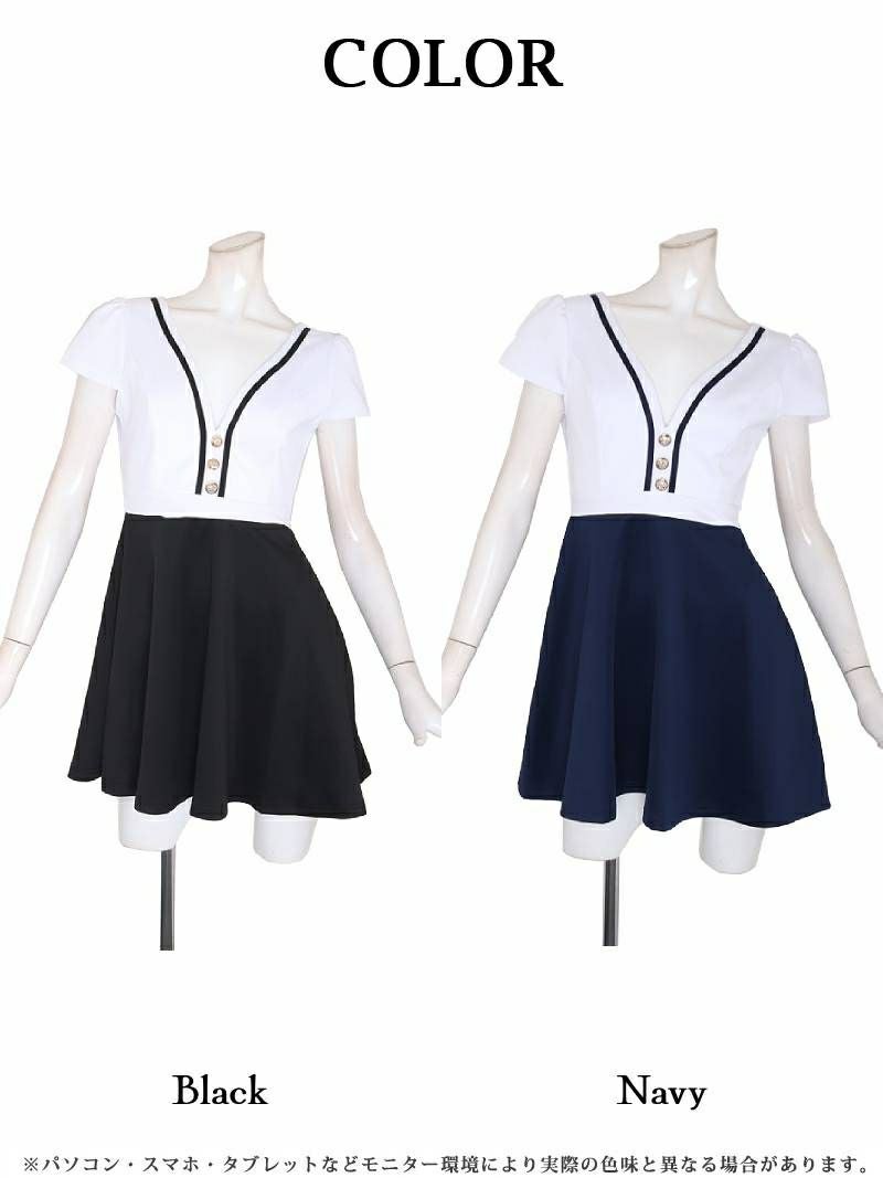 バイカラーでメリハリボディで着こなせるキャバクラワンピースはウエスト位置での切り替えしが脚長効果も抜群ですよ。