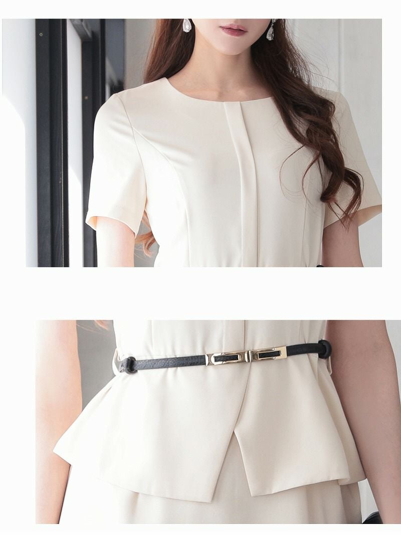ペプラム切替がウエストまわりをふんわりカバーし、自然なスタイルアップが叶います