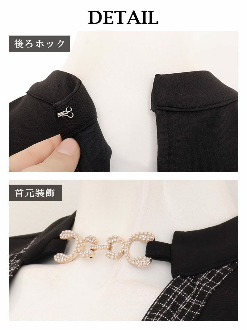 ツイードラインが上品さを添えつつ、首元のゴールドビットが華やかさをプラス。