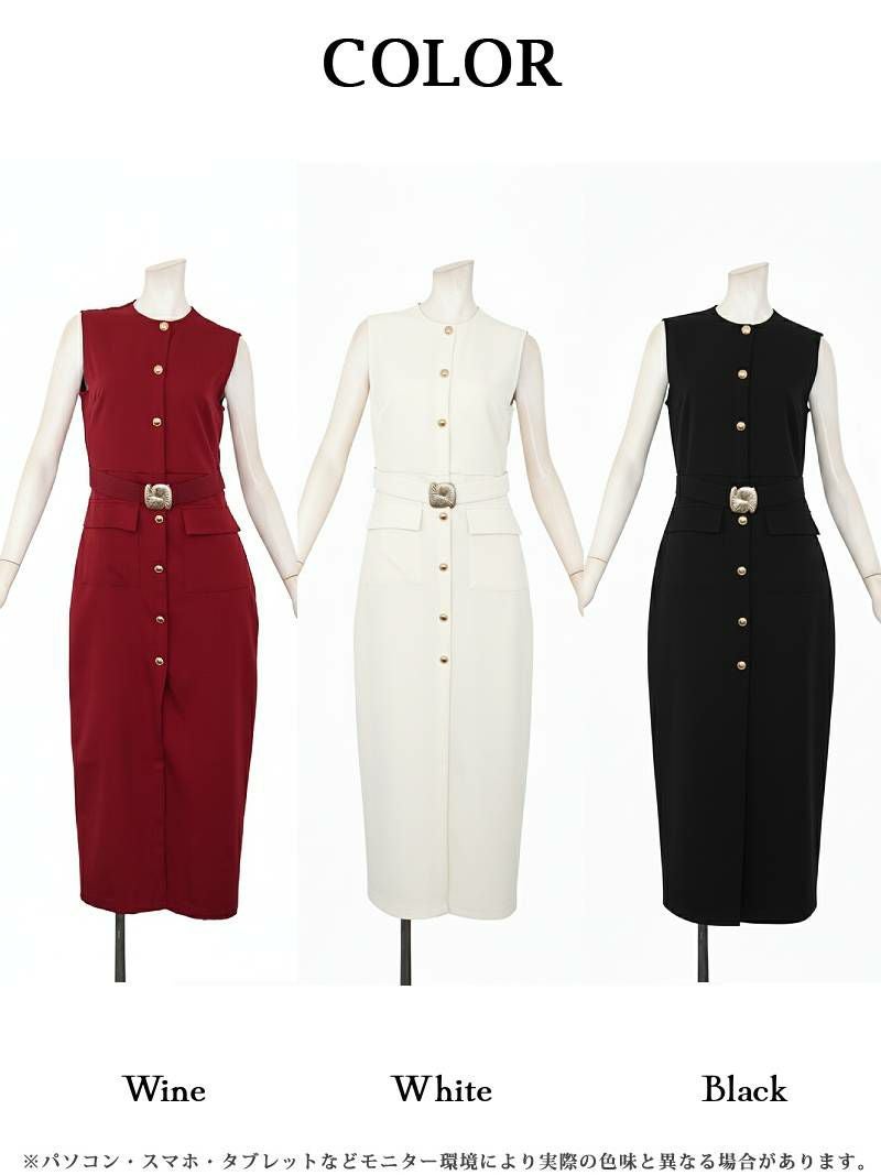 ※一部予約販売※ノースリーブボタンデザインベルト付きタイトワンピース【DaysPiece】