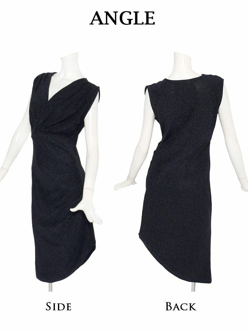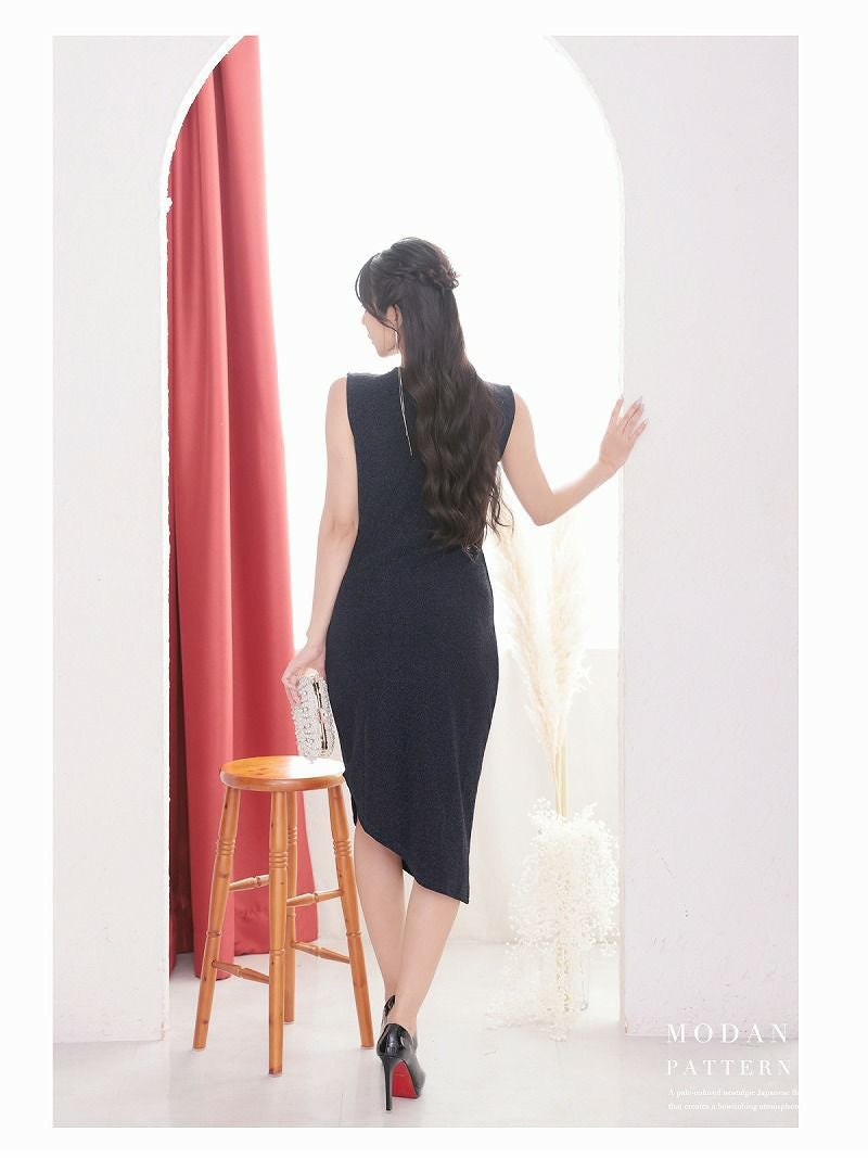 ラメ入りネイビーアシンメトリーミディ丈韓国ワンピース KANO 着用 キャバワンピース【DAYS PIECE】