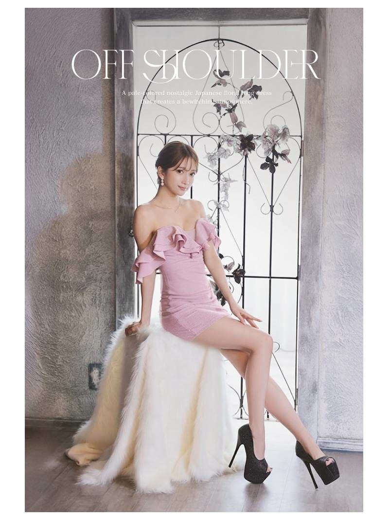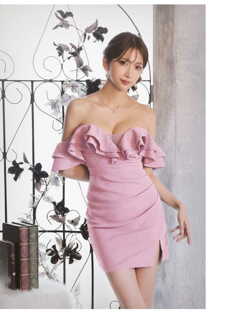 ※一部予約販売※ボリュームフリルオフショルダータイトミニドレス【Ryuyu】