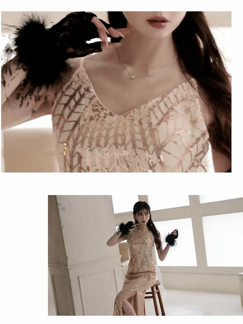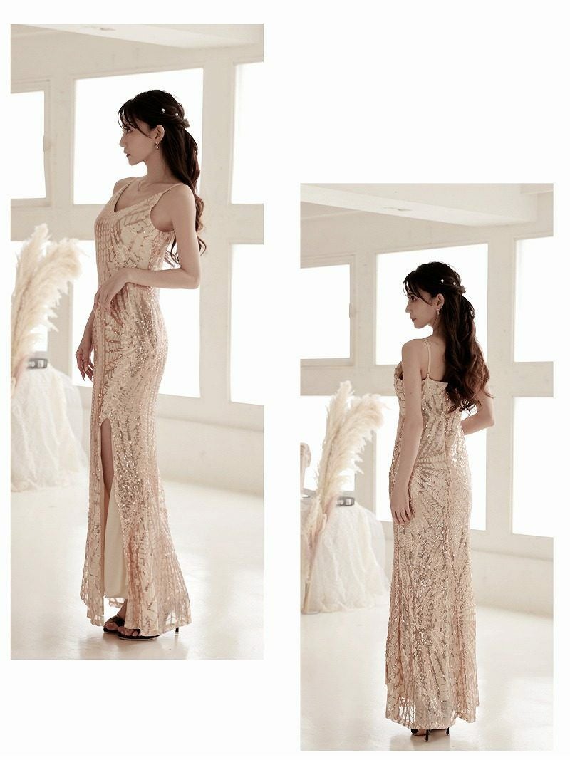 総スパンコールVネックマーメイドロングドレス 加賀美早紀 着用キャバドレス【Belsia】