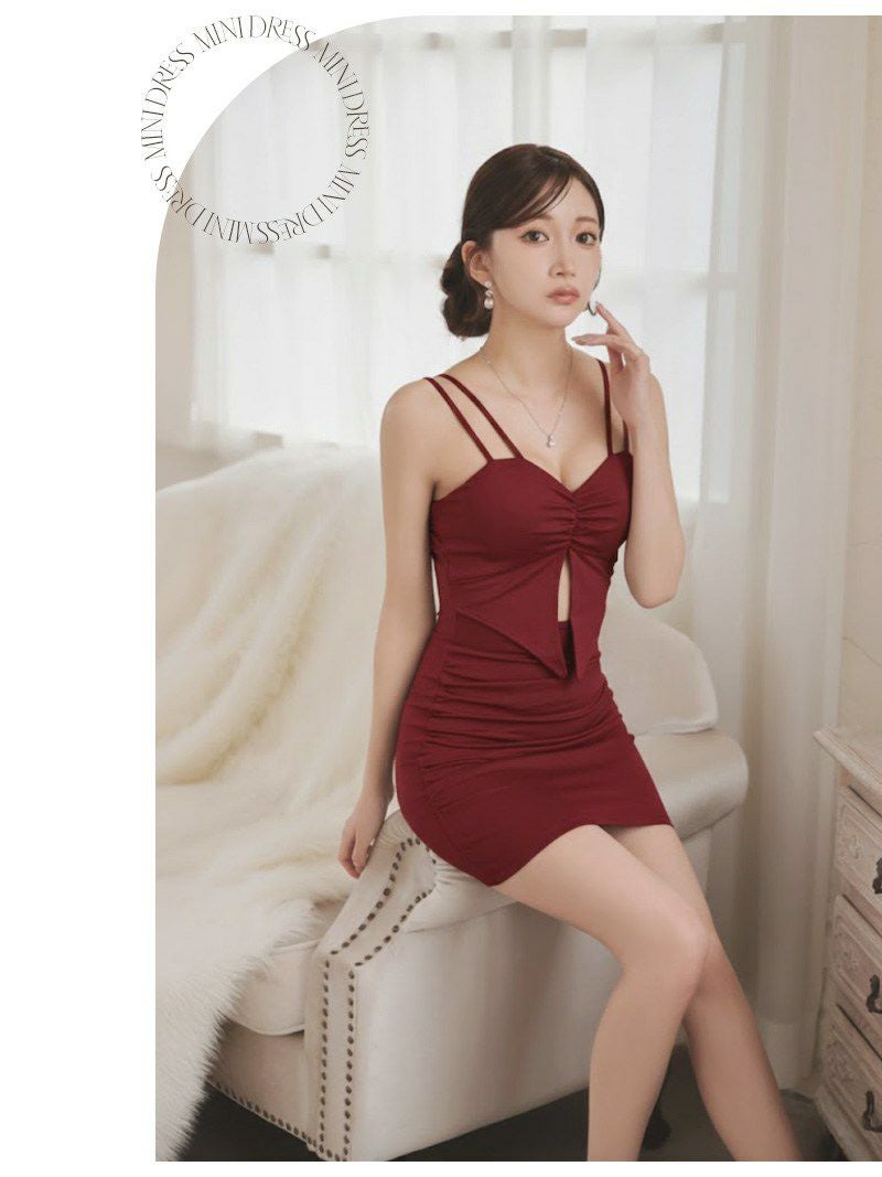 ※一部予約販売※谷間みせビスチェ風ダブルストラップタイト肉厚パッド入りミニドレス【Ryuyu】
