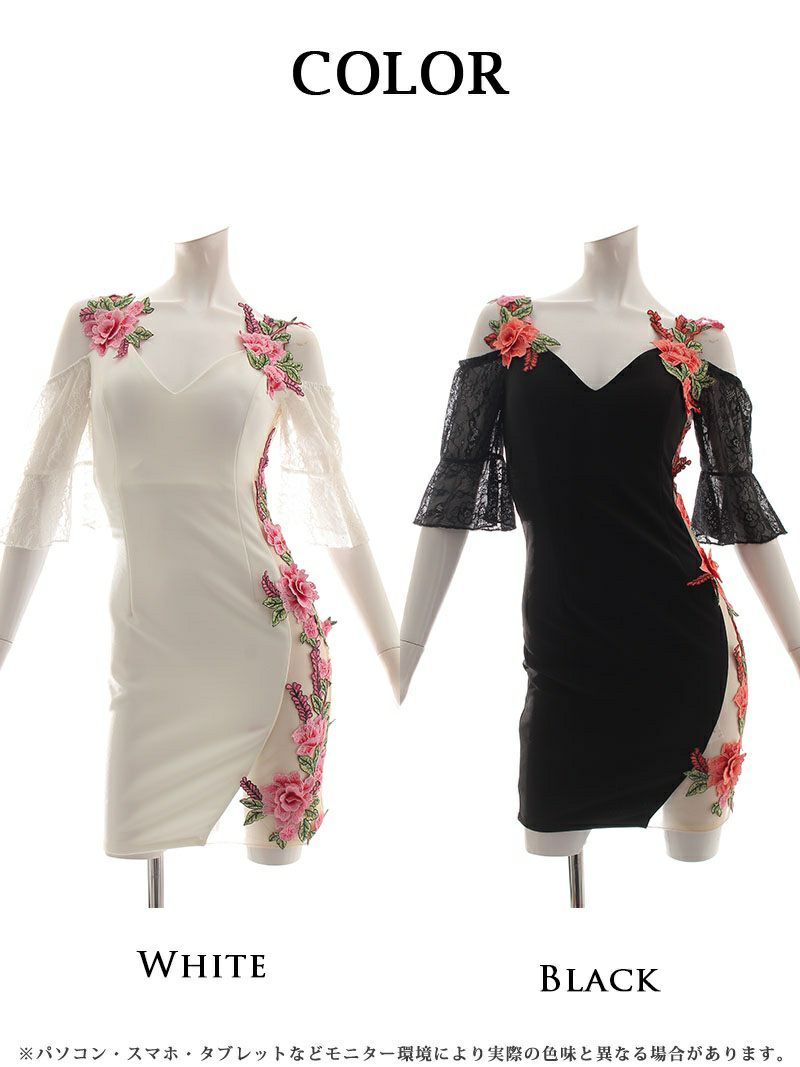 シックなハイウエストが魅力的 半袖カシュクールレースサイドボタン韓国キャバミニドレス【DAYS PIECE】(S/M/L)(ブラック/ホワイト)