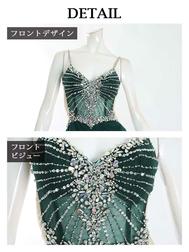 豪華なビジューで顔周りを華やかに。 【Angel R/エンジェルアール】ホルターネックビジューストーンサイドスリットマーメイドロングドレス えがさり 着用 ロングドレス(S/M)(ホワイト/モカ/ミントグレー)