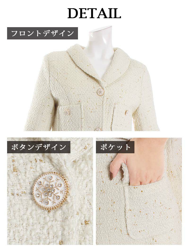 4. MIXツイードショート丈ジャケットキャバスーツ 加賀美早紀 着用レディーススーツ【Belsia】(S/M/L)(ブラック/アイボリー)