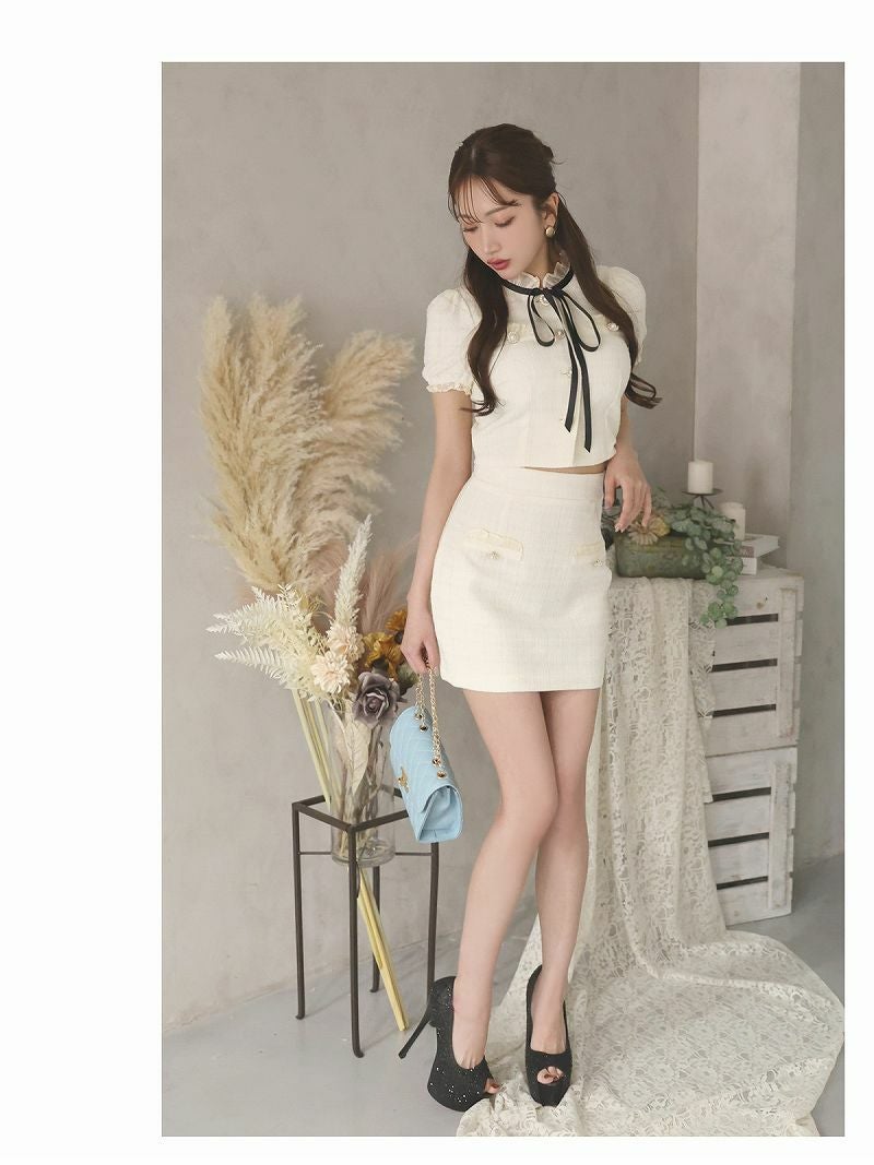 ライトツイードが可愛い愛されcuteキャバ嬢ミニセットアップドレス【Ryuyu】