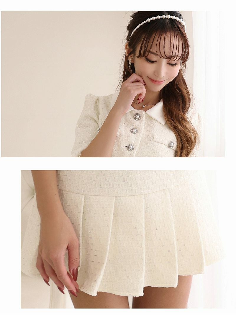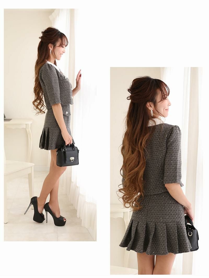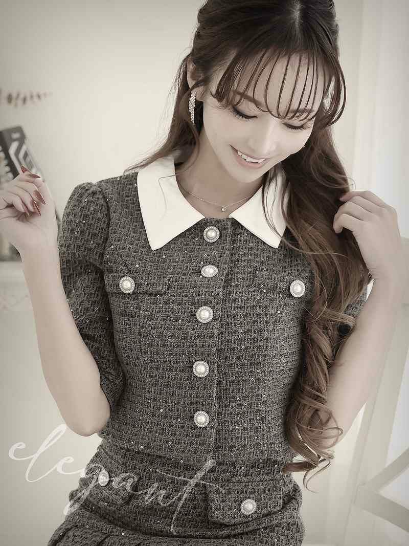 ラメツイード韓国風セットアップスーツ 武田静加 キャバスーツ【Belsia】