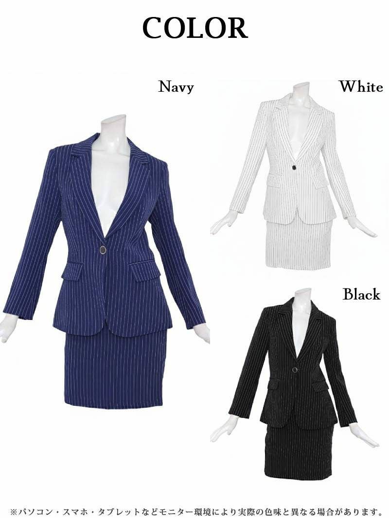3. 洗練ピンストライプ柄テーラードジャケット&タイトスカートセットアップスーツ 加賀美早紀 着用キャバスーツ【BelsiaLUX】(S/M/L/XL(2L))(ホワイト/ブラック/ネイビー)