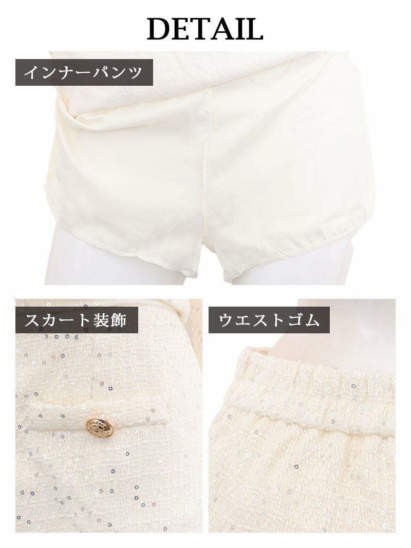 6. スパンコールツイード金ボタンセットアップスーツ 加賀美早紀 着用キャバドレス【Belsia】(S/M/L/XL(2L)/XXL(3L))(オフホワイト)