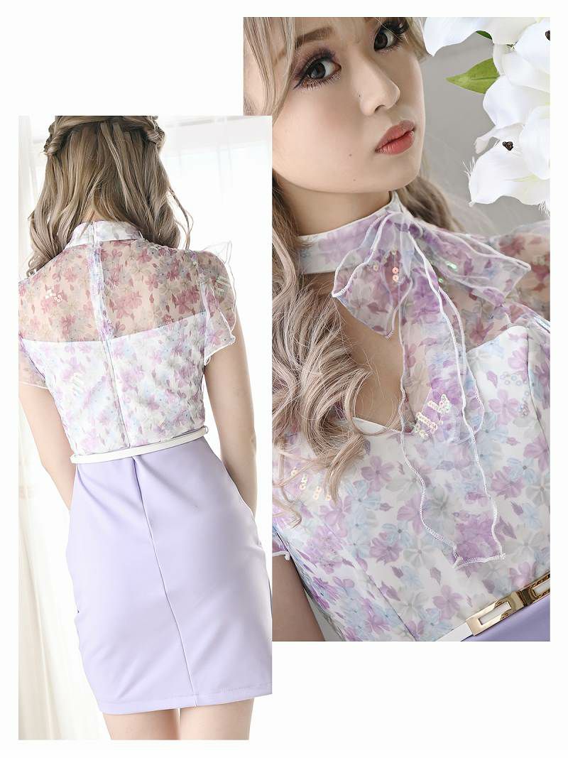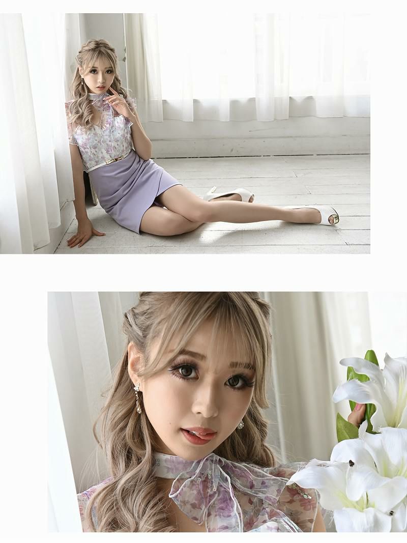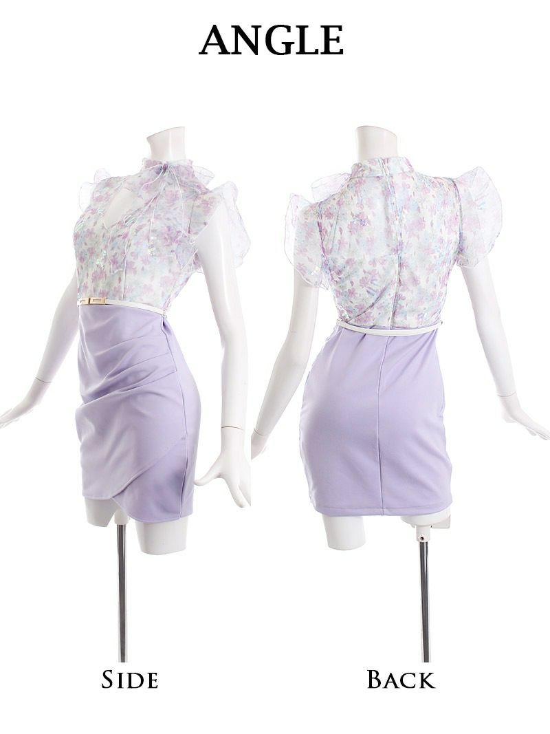 エレガントなフリルスタイル キャバスーツフリルEleganceなフェイクインナー付きコルクlineキャバスーツ【Belsia】