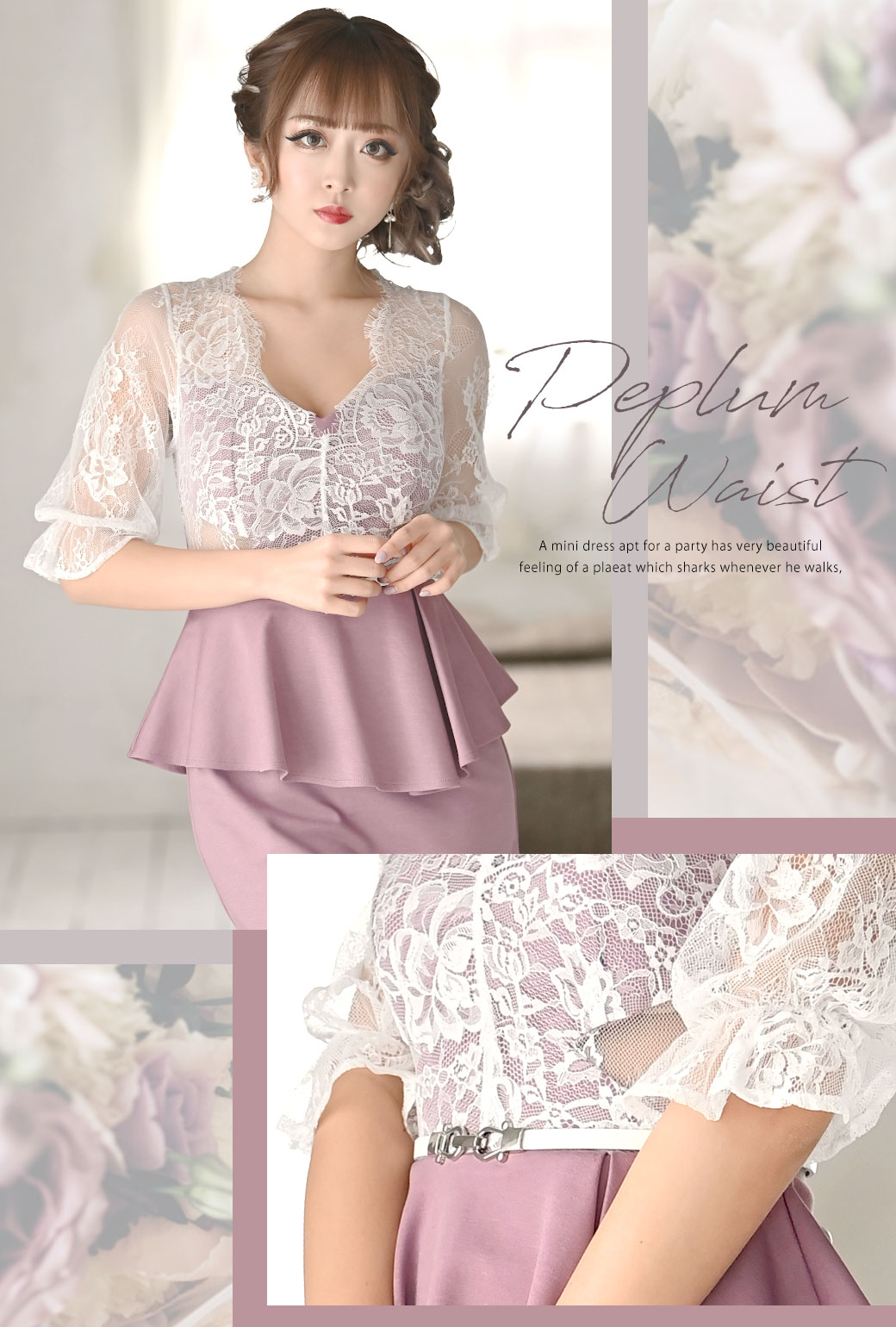 上品な花柄レースをふんだんに使ったペプラムドレス。