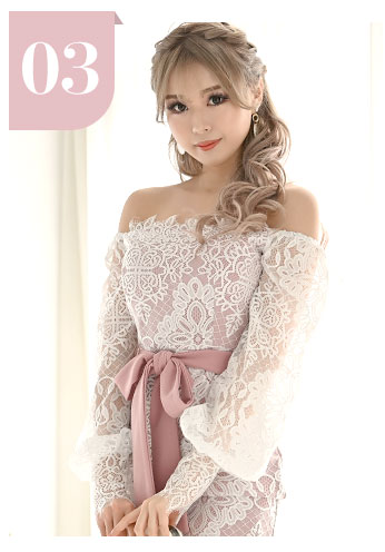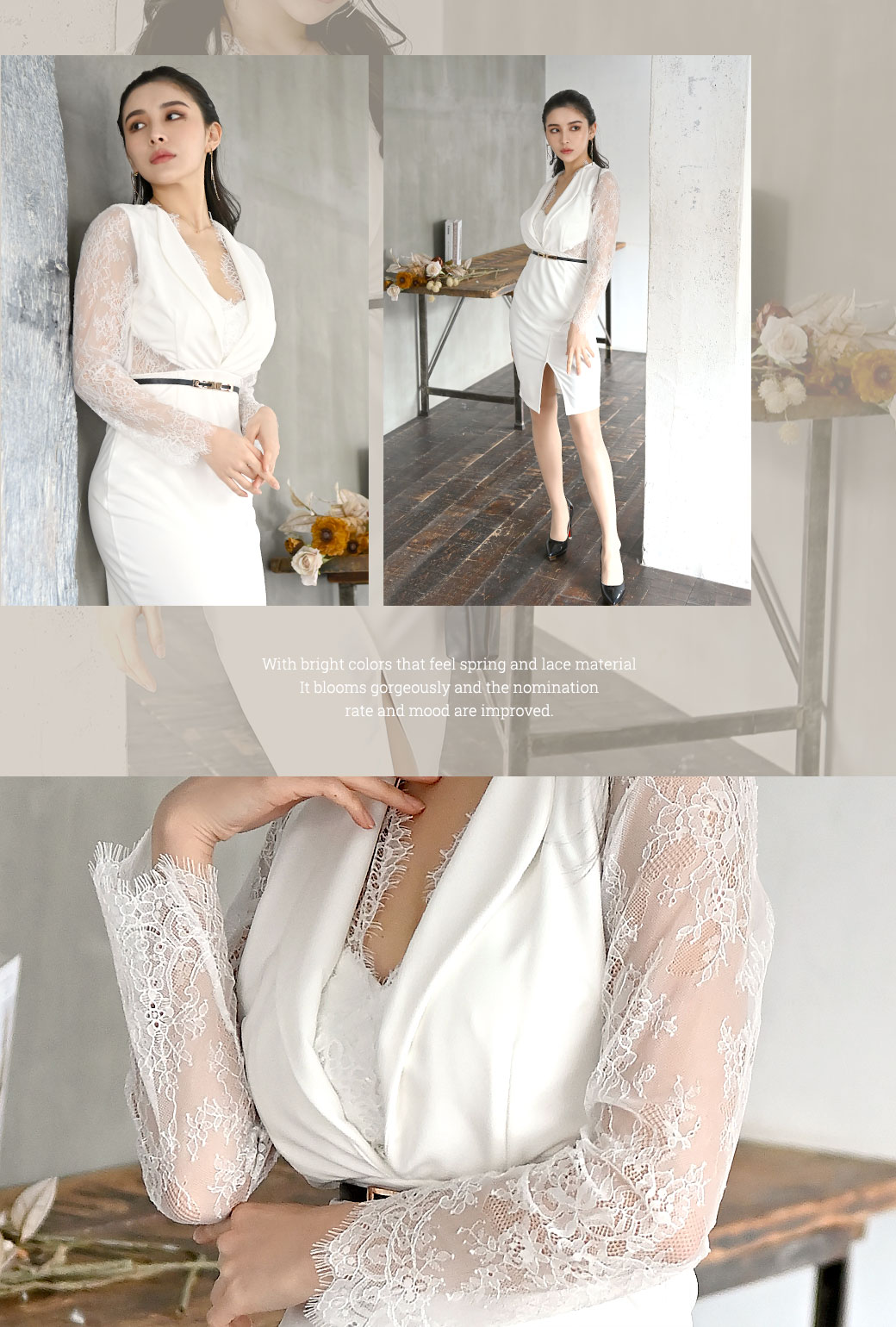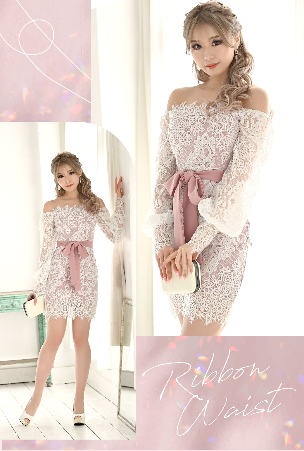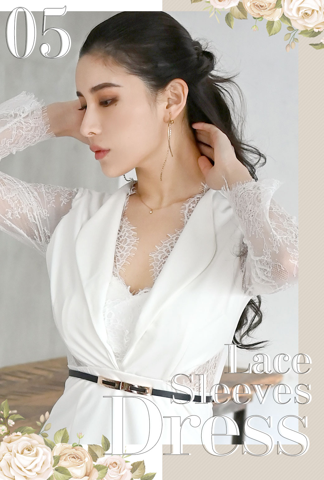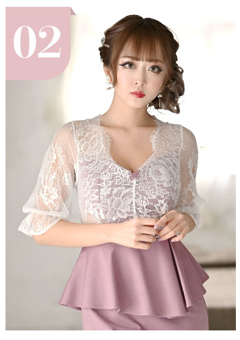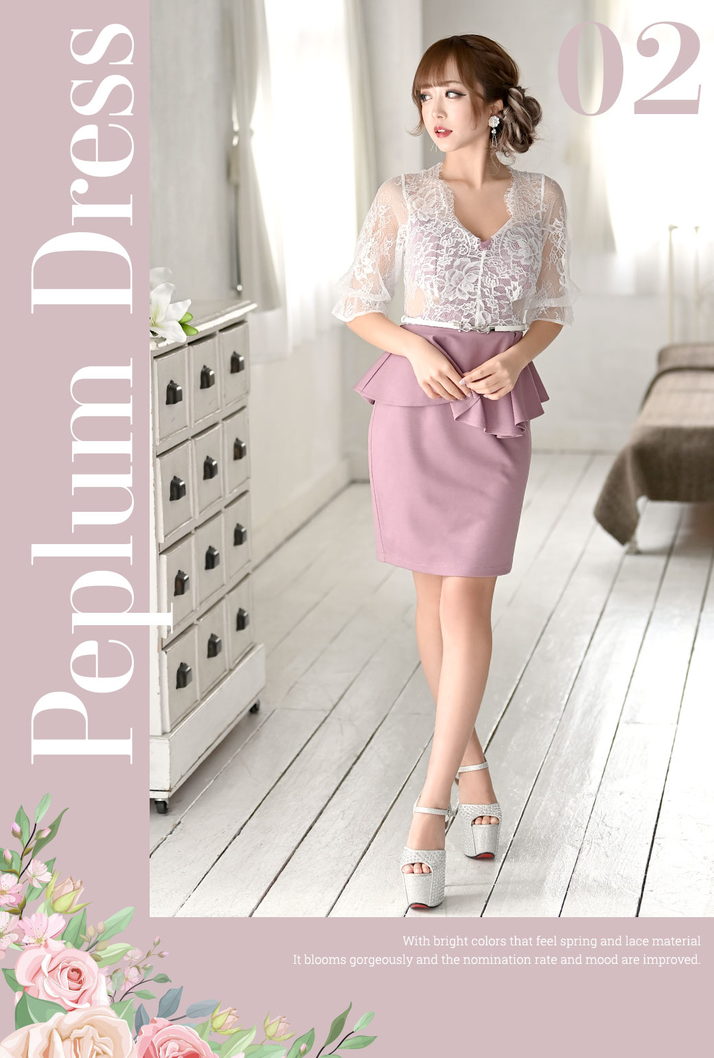 上品な花柄レースをふんだんに使ったペプラムドレス。