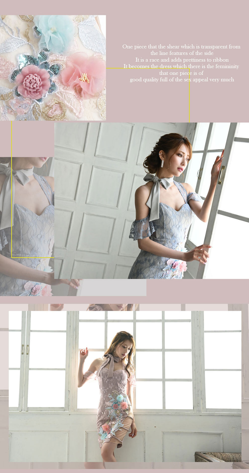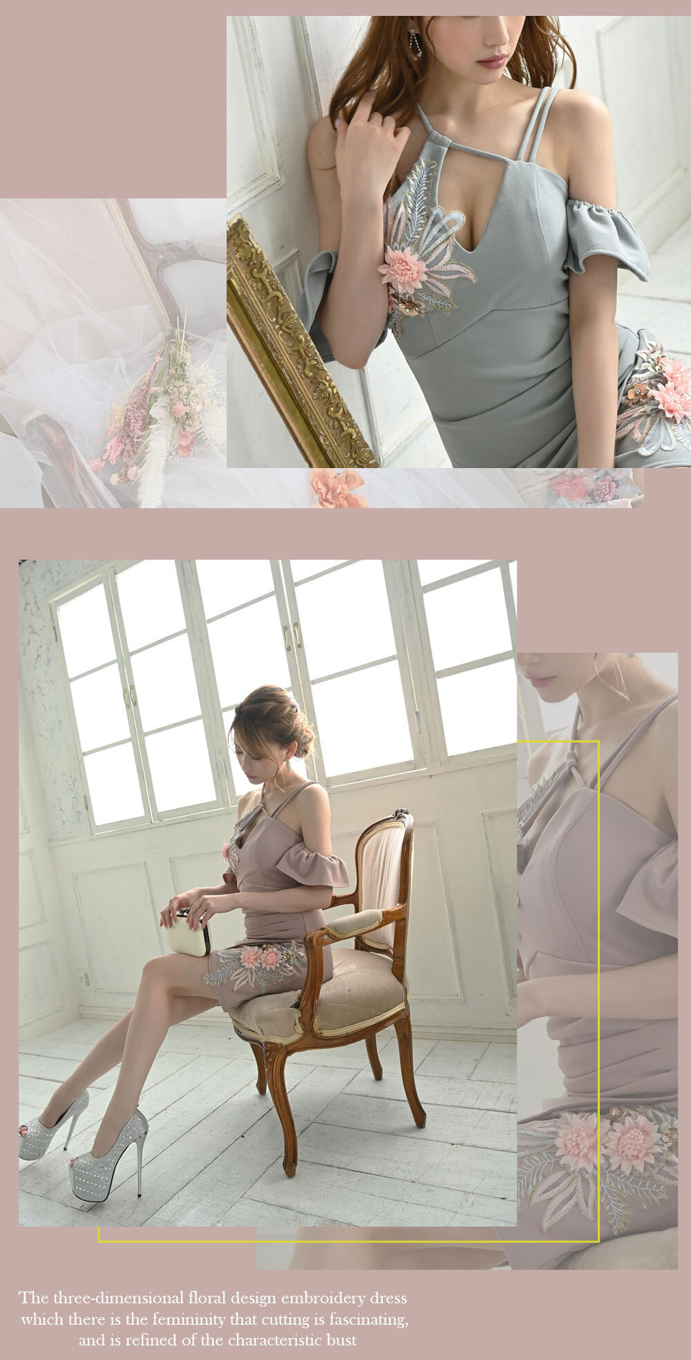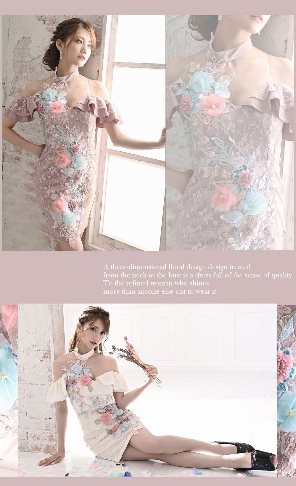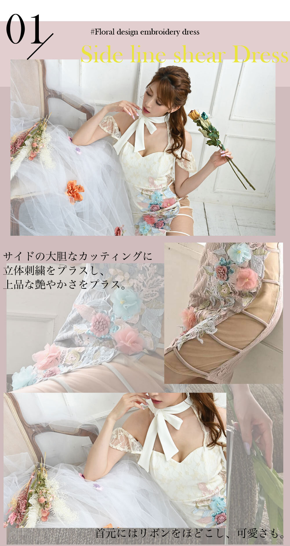 3Dフラワー刺繍ドレス