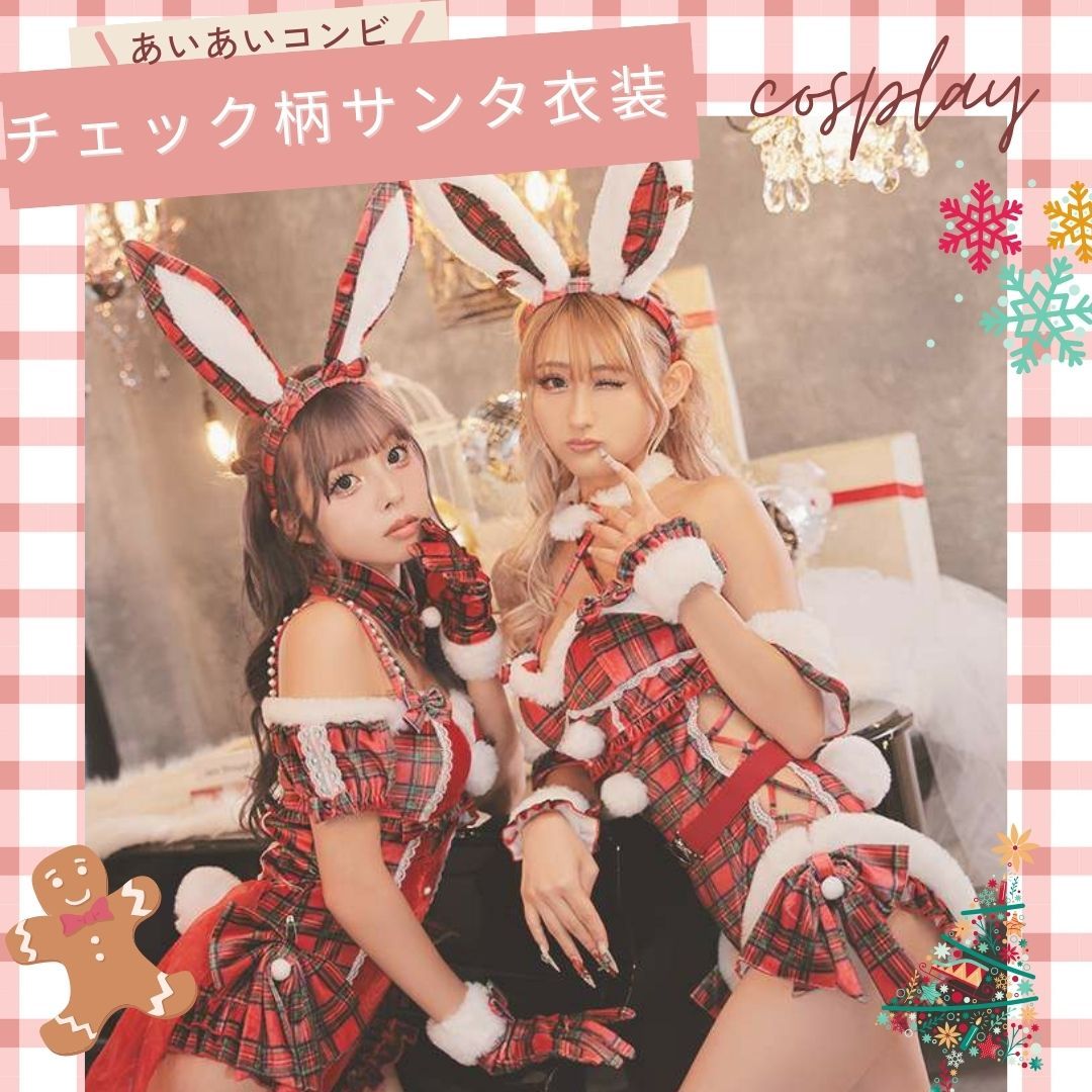 チュールが豪華なチェック柄バニーサンタ衣装❤目を惹くデザインがまわりと圧倒的な差をつけちゃう💕