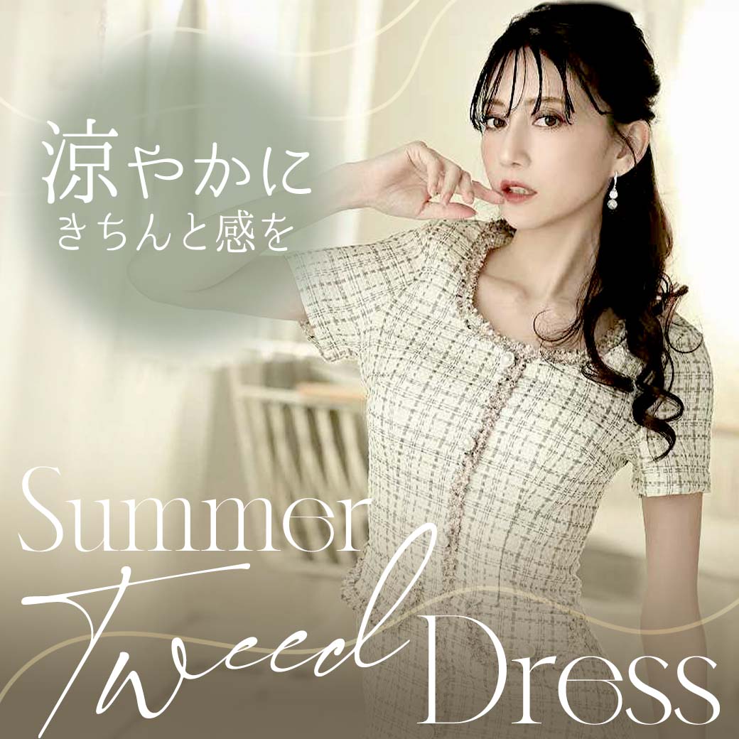 今トレンドといえばツイードドレス👗✨ だけどツイードドレスって秋冬のイメージが強くて暑そうじゃない😢と思うキャバ嬢さんも多いのでは!? そんなキャバ嬢さんのために夏用の薄手生地で涼しいサマーツイードドレスをご用意しました🤞❤ キャバドレス通... -
