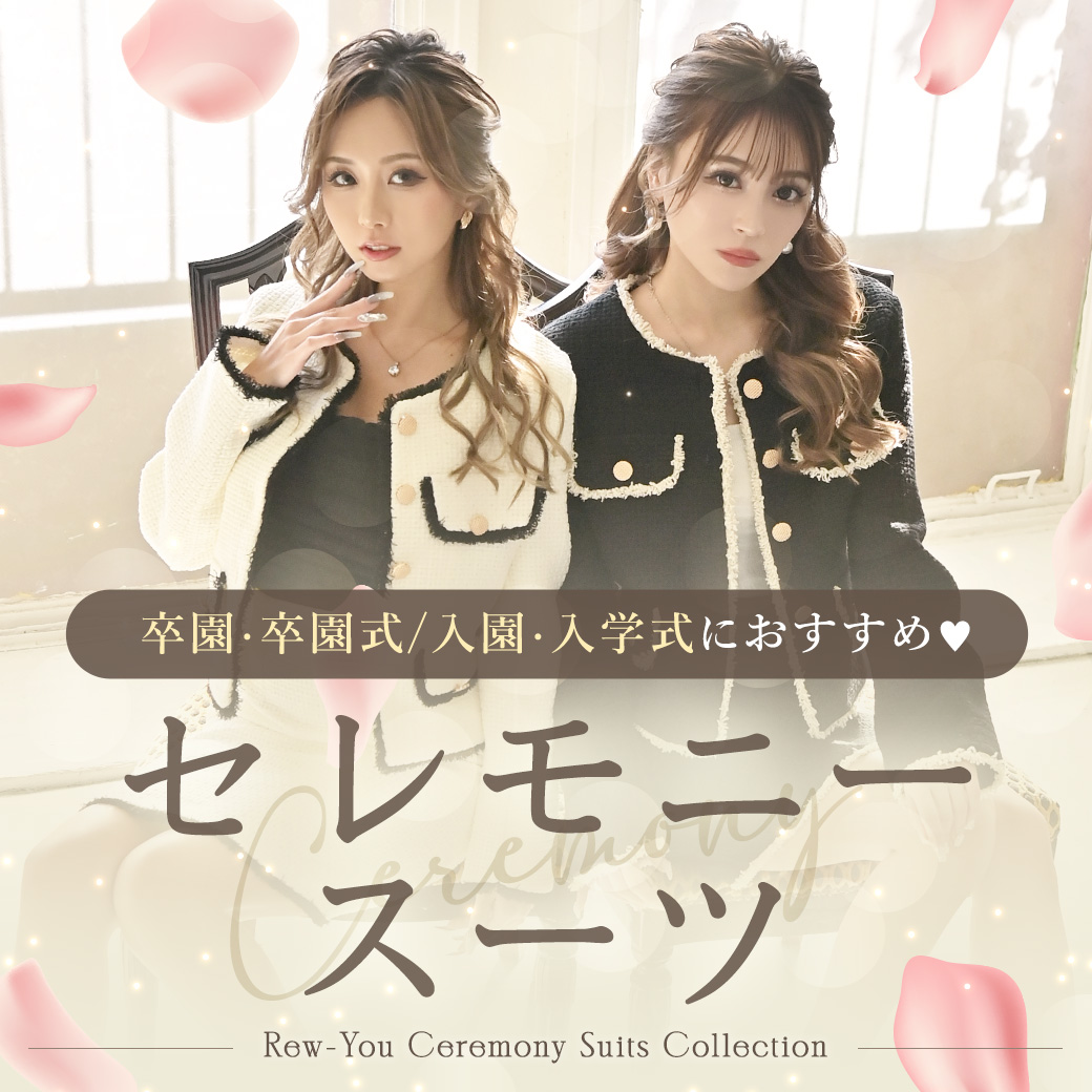 卒業式・卒園式・謝恩会など、ハレの日を彩る式スーツ✨式スーツだってまわり被らず可愛く着たいですよね~😍💕キャバスーツ業界TOPのRew-Youはフォーマルスーツも豊富なラインナップがあるため、式スーツも可愛くお上品に着こなすことができちゃうんです🥺💝そんなギャルママ・キャバママさん達におすすめのスーツを3つご紹介♪ -