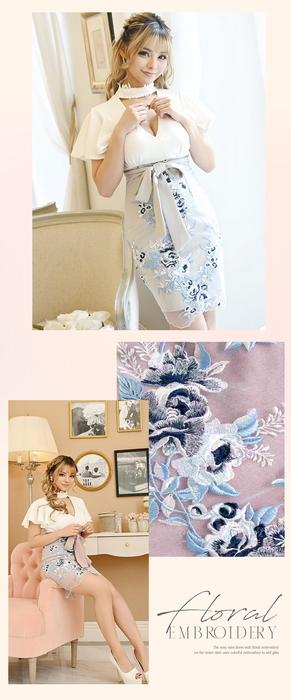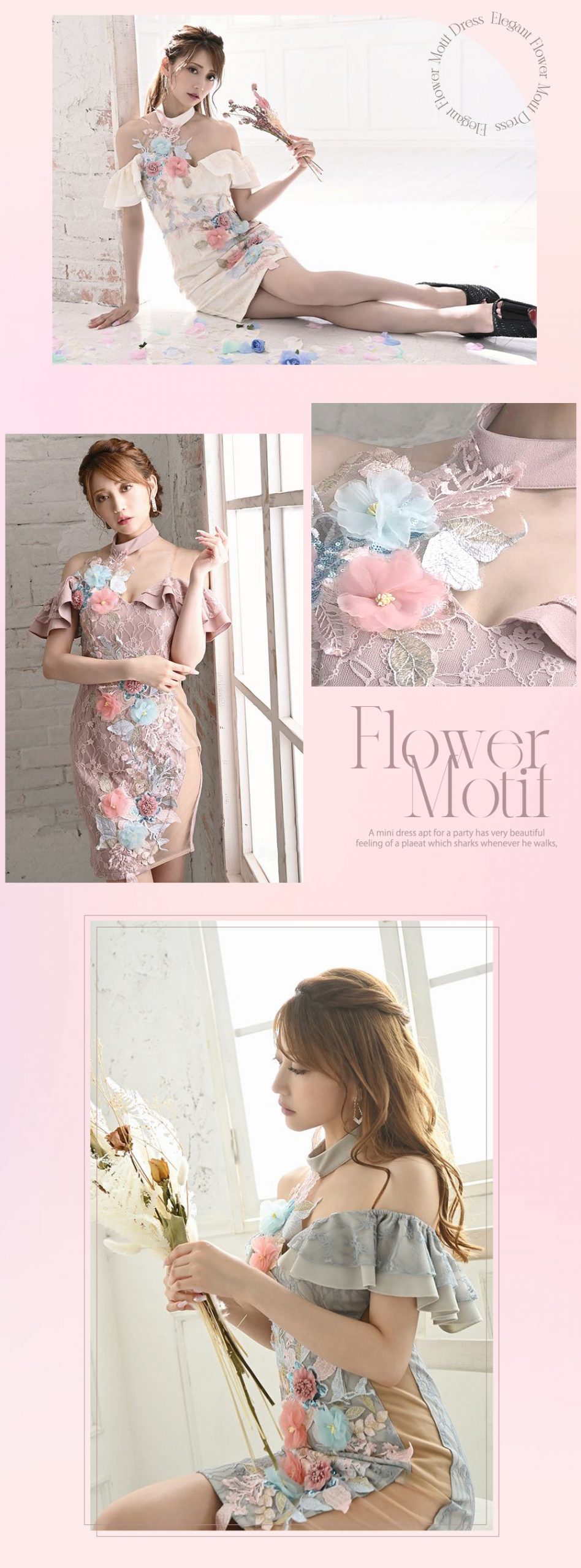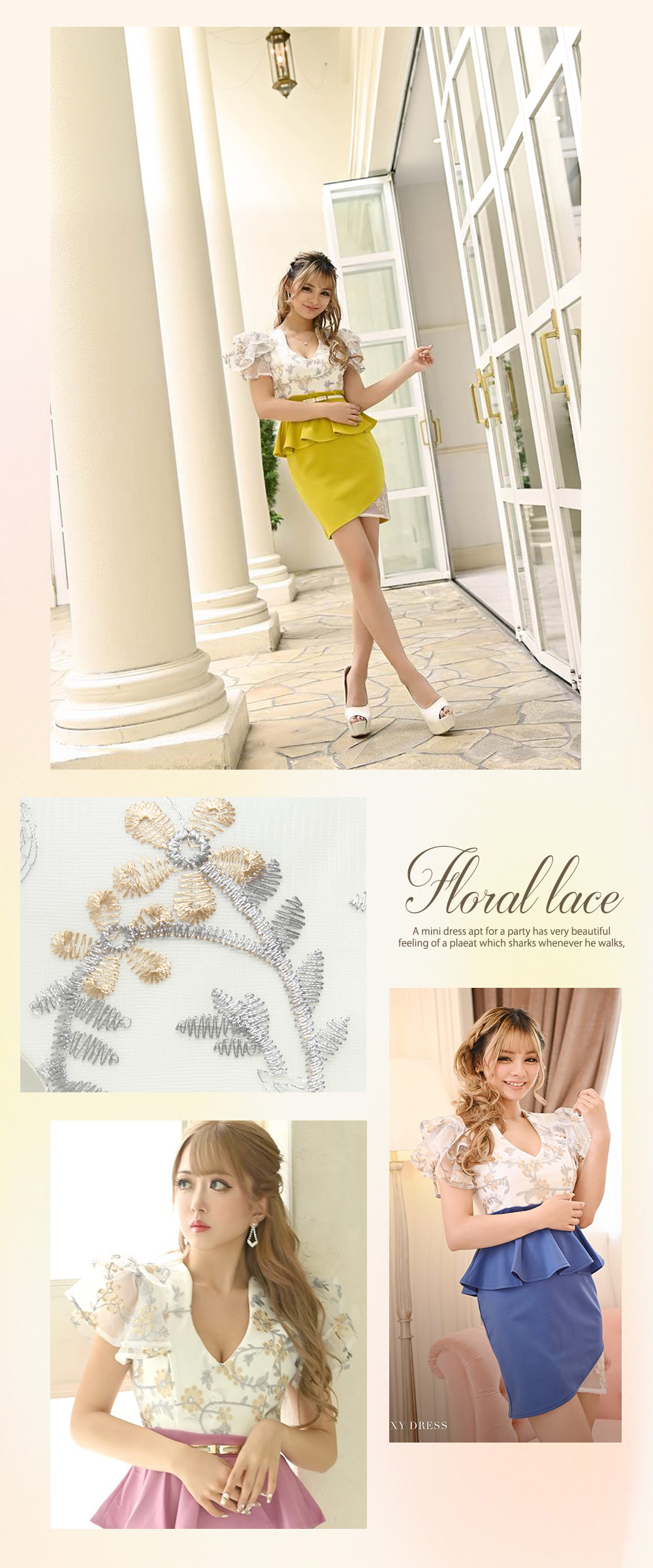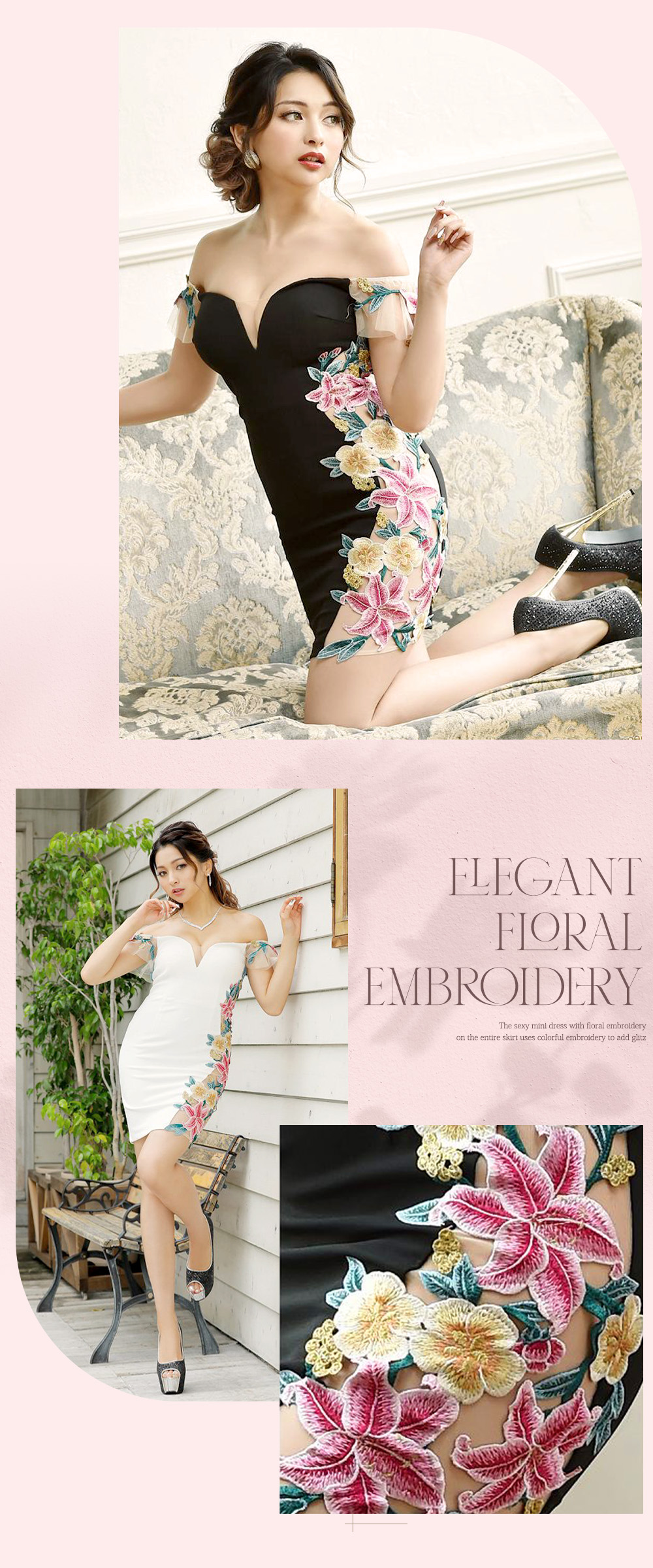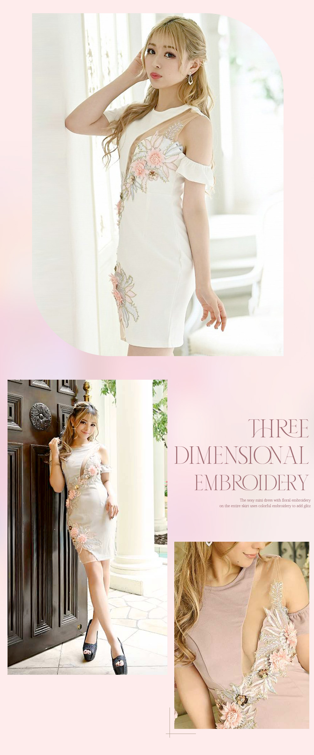 • 二の腕カバーも叶う!レース袖×立体刺繍のSexyミニドレス