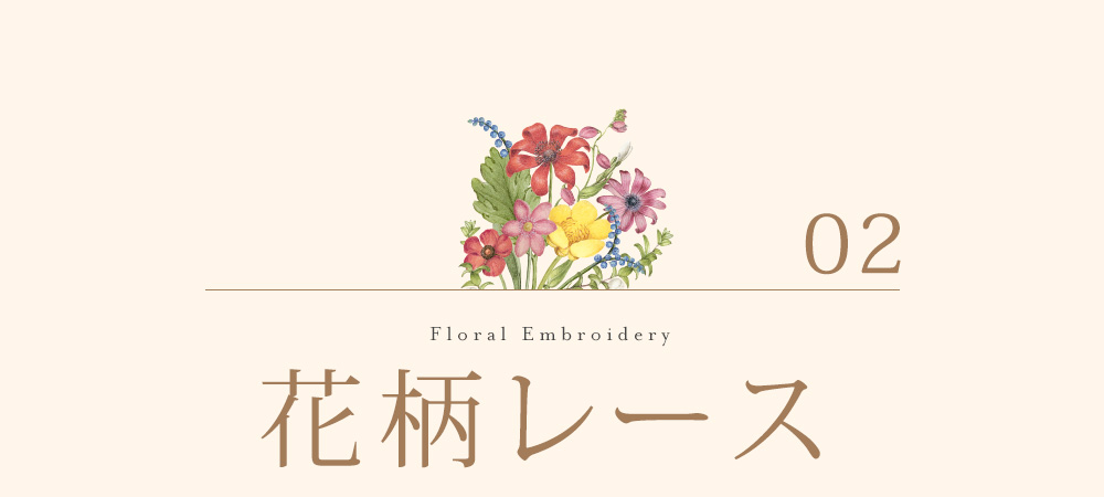 立体感のある花柄刺繍をあしらって可愛さの中に高級感もON