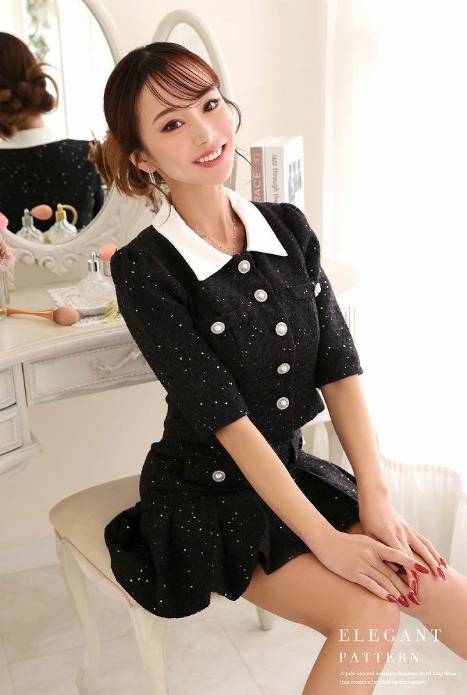 ブラック×ゴールドの大人カラーで挑むセットアップコーデ🎀大人カラーだからこそミニスカートで可愛さも忘れずに🙆♀️