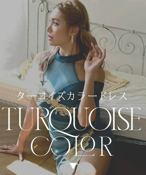 知的で落ち着いた印象になる「ターコイズブルー」のドレス。エレガントセクシーなレースやシアーとのドッキングがどこかぬけ感もあり、お客様をメロメロにしちゃいます。高級感が醸し出せるターコイズ色のワンピースは同伴にもぴったりな大人なワンピースです。