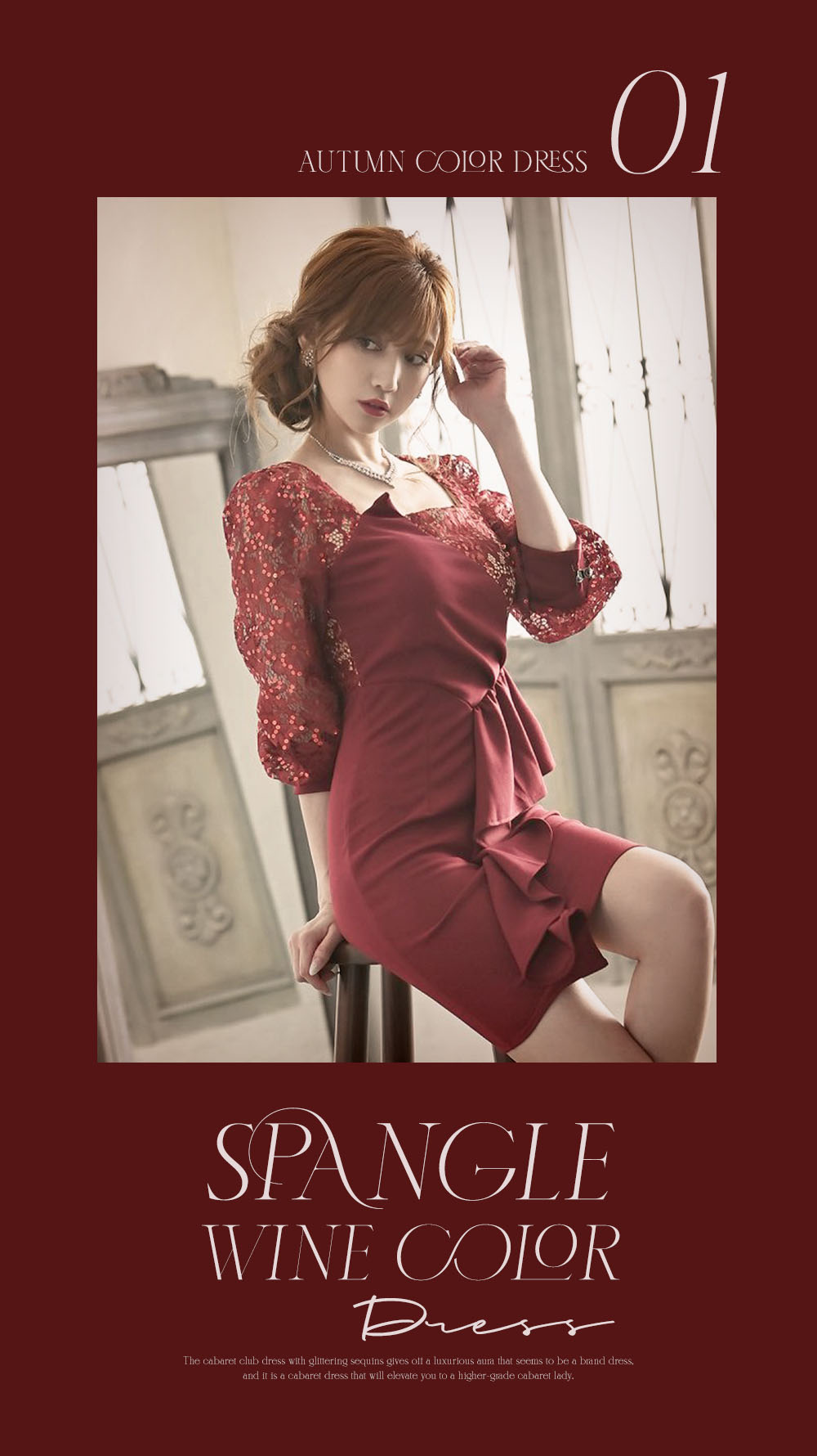 煌めくスパンコールレースが華やかな印象のワンランク上のキャバ嬢へ格上げしてくれるワンカラーのキャバドレス。秋にはもちろん年末にかけてクリスマスやお正月イベントにもぴったりな華やかで上品なワンレッドドレスです♡