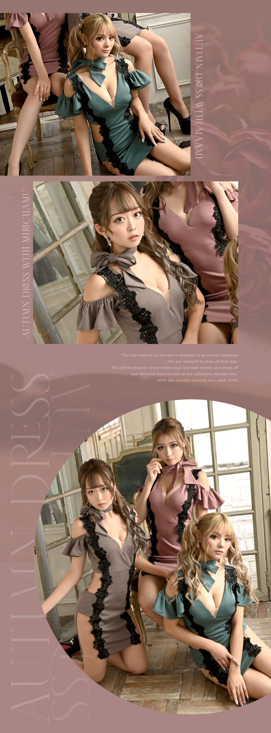 eggモデルが着こなすシーズンムード高まる秋カラードレス特集♡今季のRew-Youは季節のカラーを今までにないカラーを取り入れました♡まわりと差をつける秋カラーで楽しんで♡