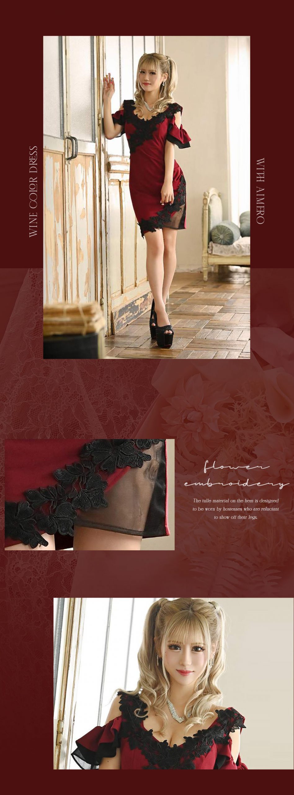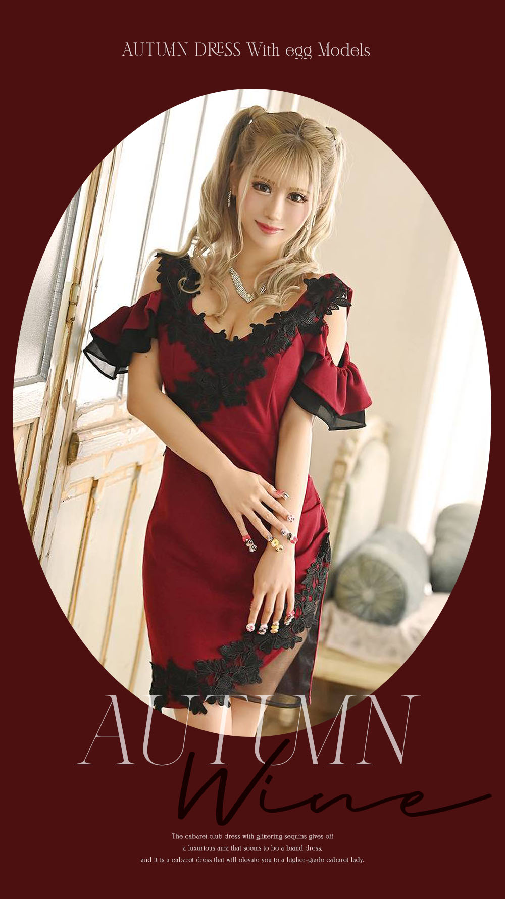 深みのあるワインカラーはやっぱり王道の秋カラー。秋カラー初心者キャバ嬢さんは外せないマストカラーは1着は持っておきたい♡