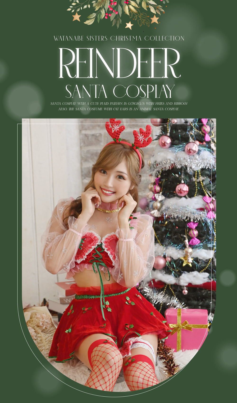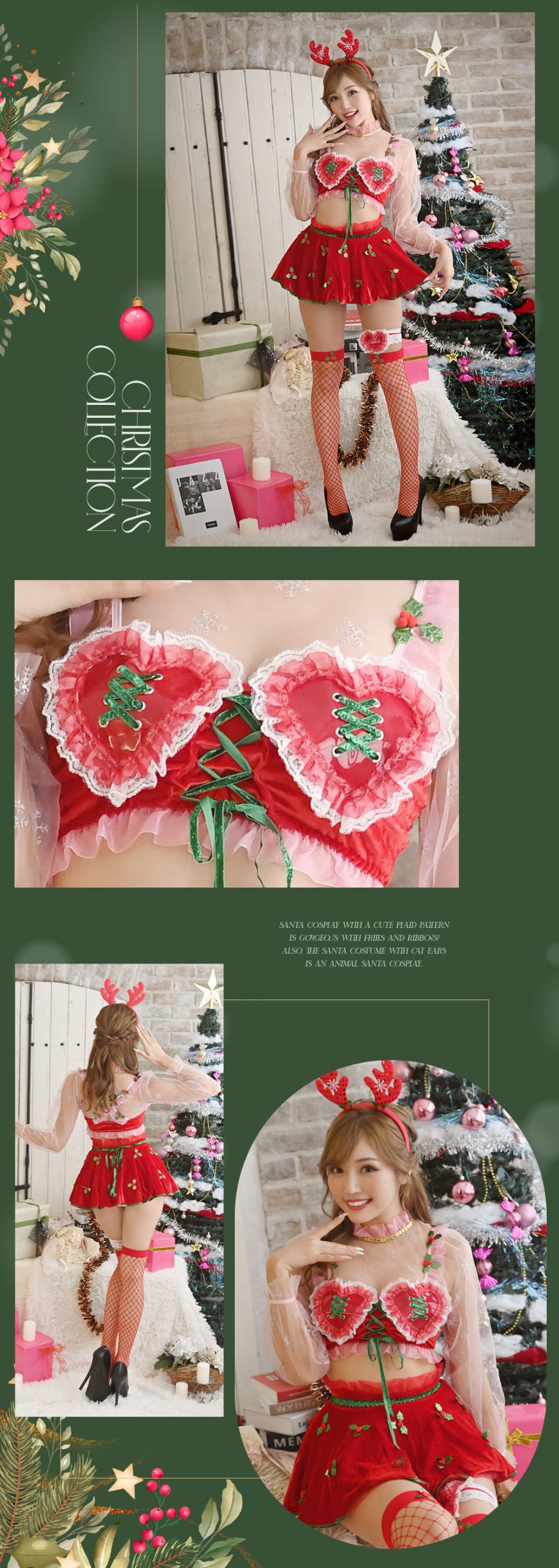 珍しいデザインのトナカイサンタコスは注目度抜群!バスト部分がハートのデザインになっていたりと細部までデザインを尽くしたクリスマスコスプレはまわりと絶対差をつける♡