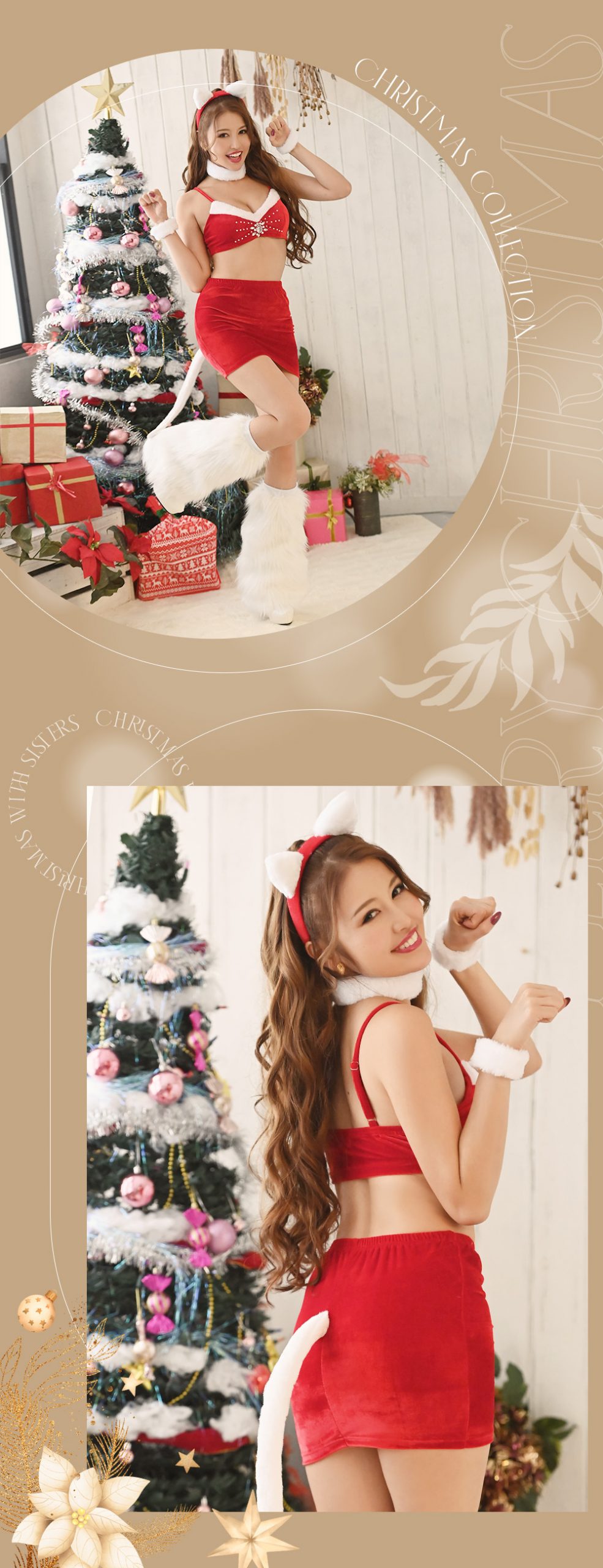 ネコちゃんサンタコスプレでドキドキを狙っちゃお♡アニマルサンタコスは女ウケも男ウケも両方抜群!ピタッとしたシルエットがボディラインも美しく魅せてくれる♡