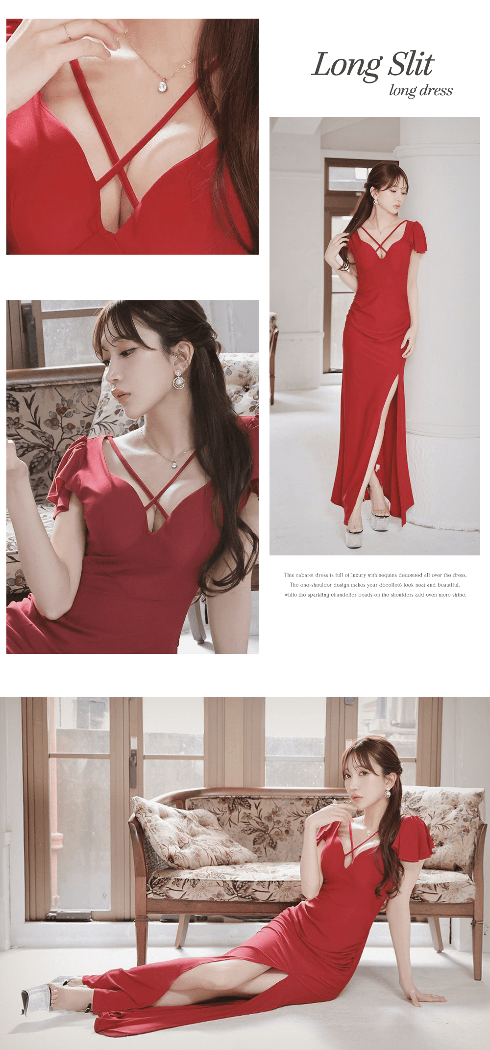 真っ赤なロングドレスで秋の夜を華やかに彩る♡