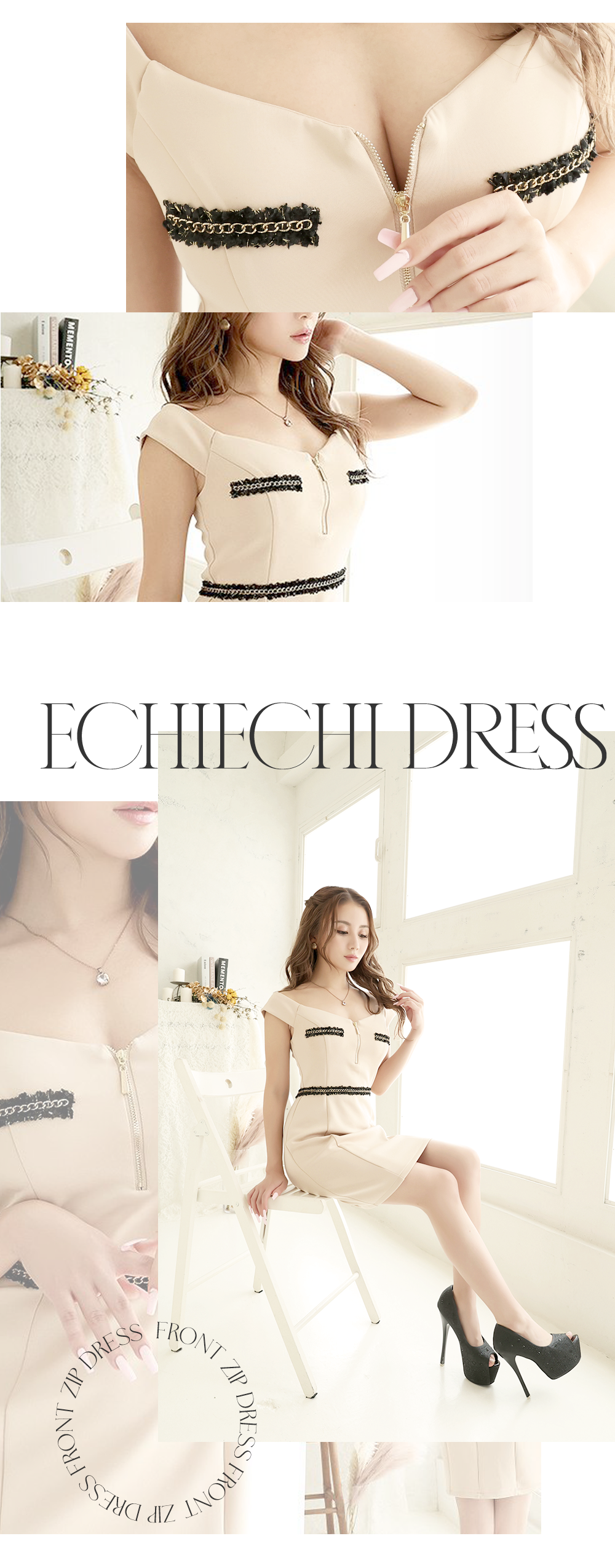 チェーンパイピングの上品さを感じつつフロントジップでエロさを見せる♡品よく、エロくを追求した最新えちえちドレス降臨♡