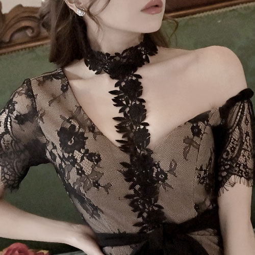 首元から流れるレースチョーカーにワンショル魅せで色気を醸し出す1着♡適度な露出があえて男ごころをくすぐる♡