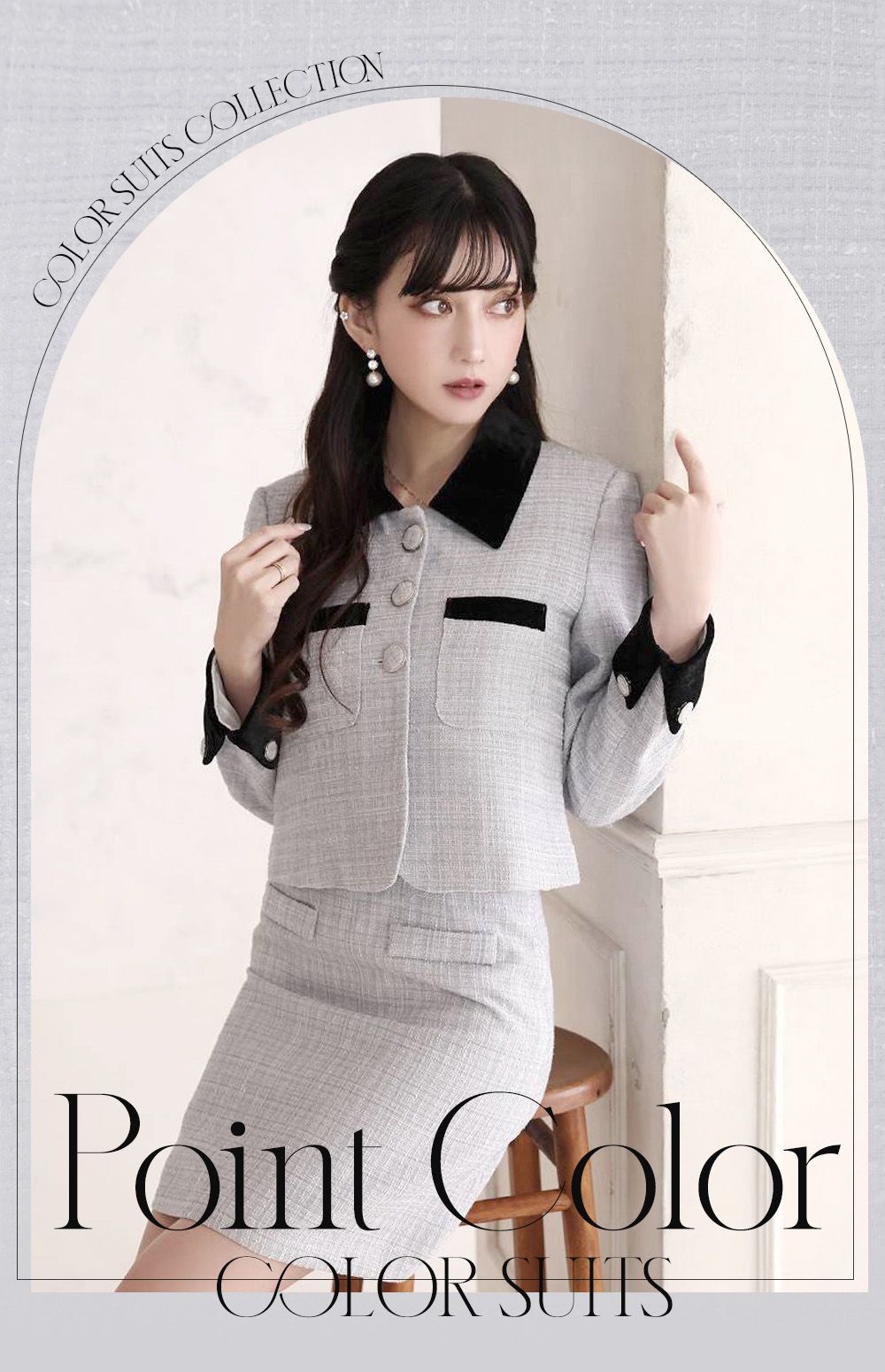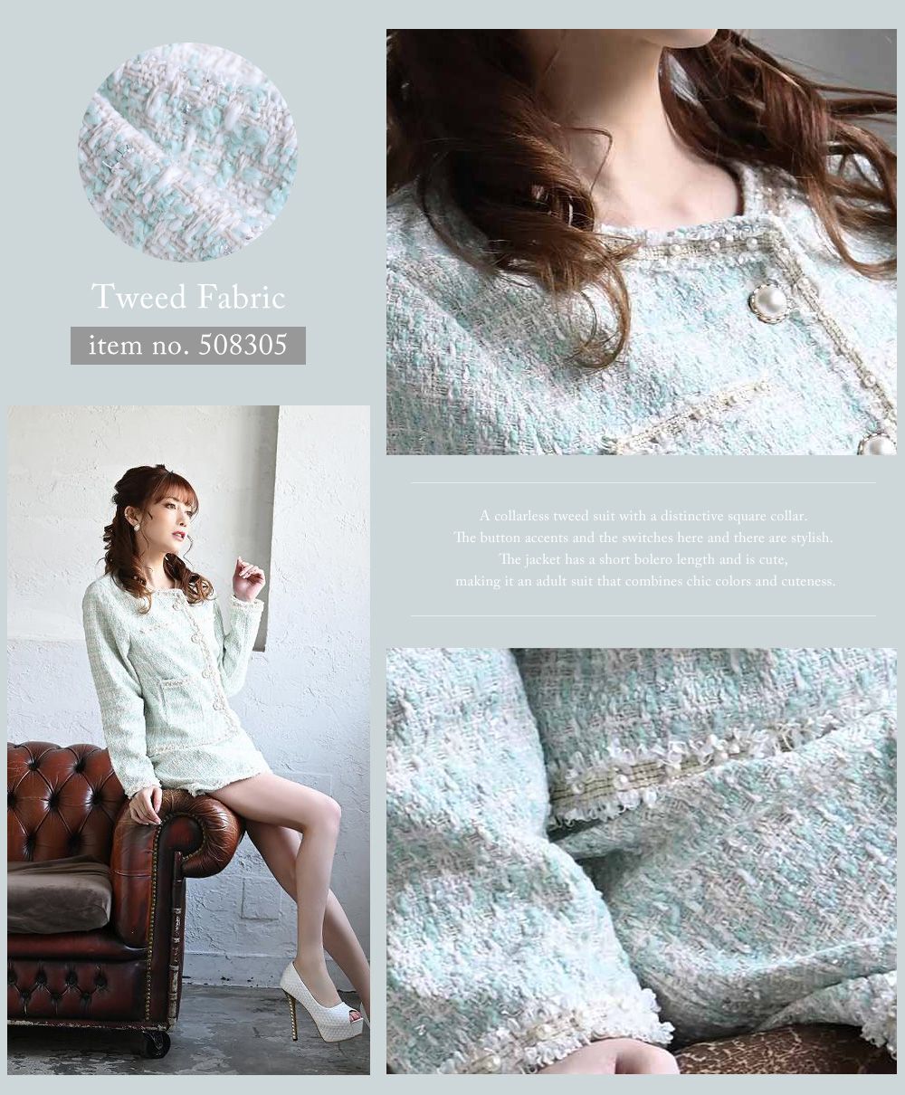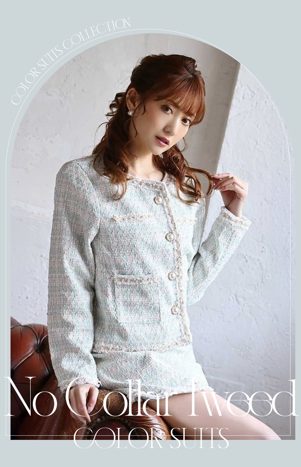 上品で華やかな印象を与える、ノーカラーツイードスーツ♥清楚でありながら存在感のある装いで特別なひをより美しく。