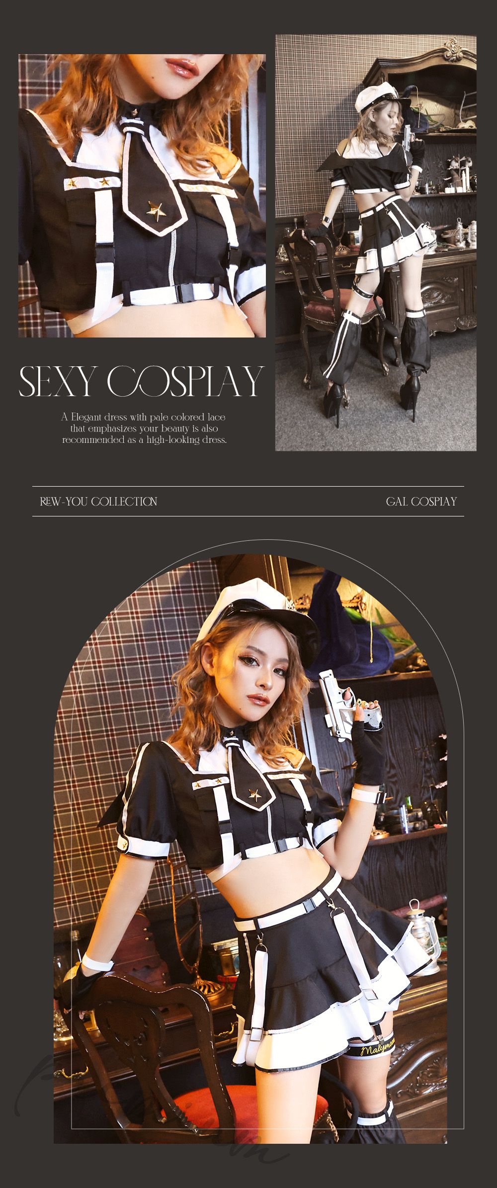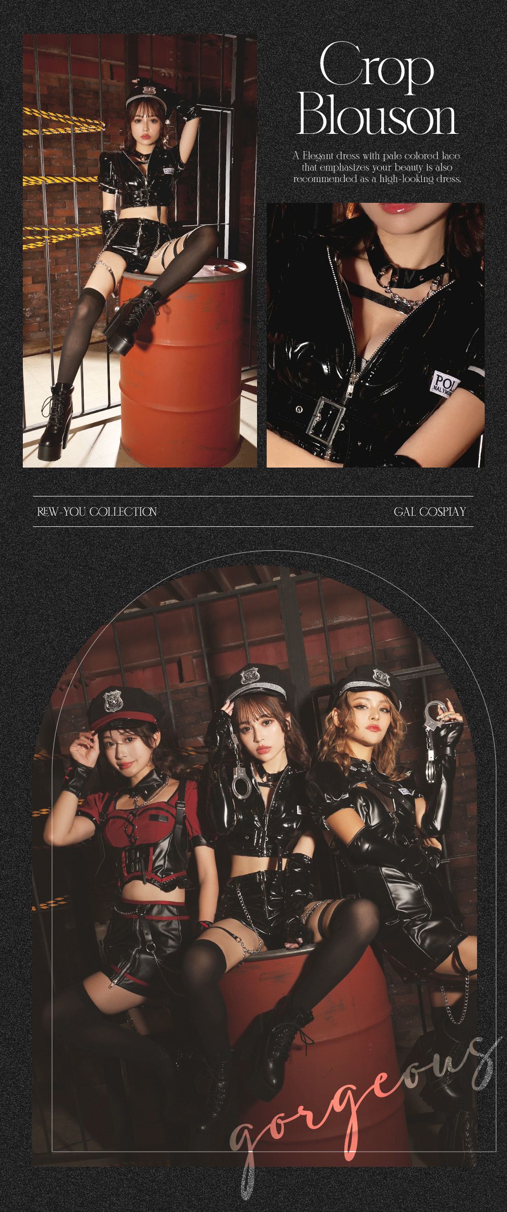 流行りのセットアップを取り入れたポリスコスプレ♡ハードなデザインに肌見せを取り入れて甘エロに♡