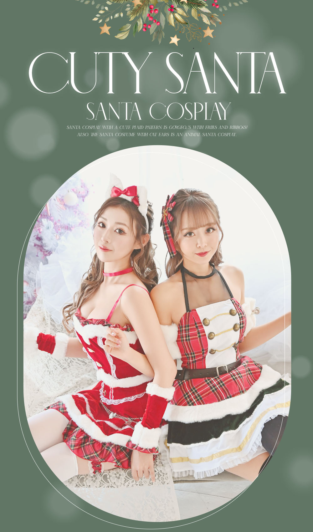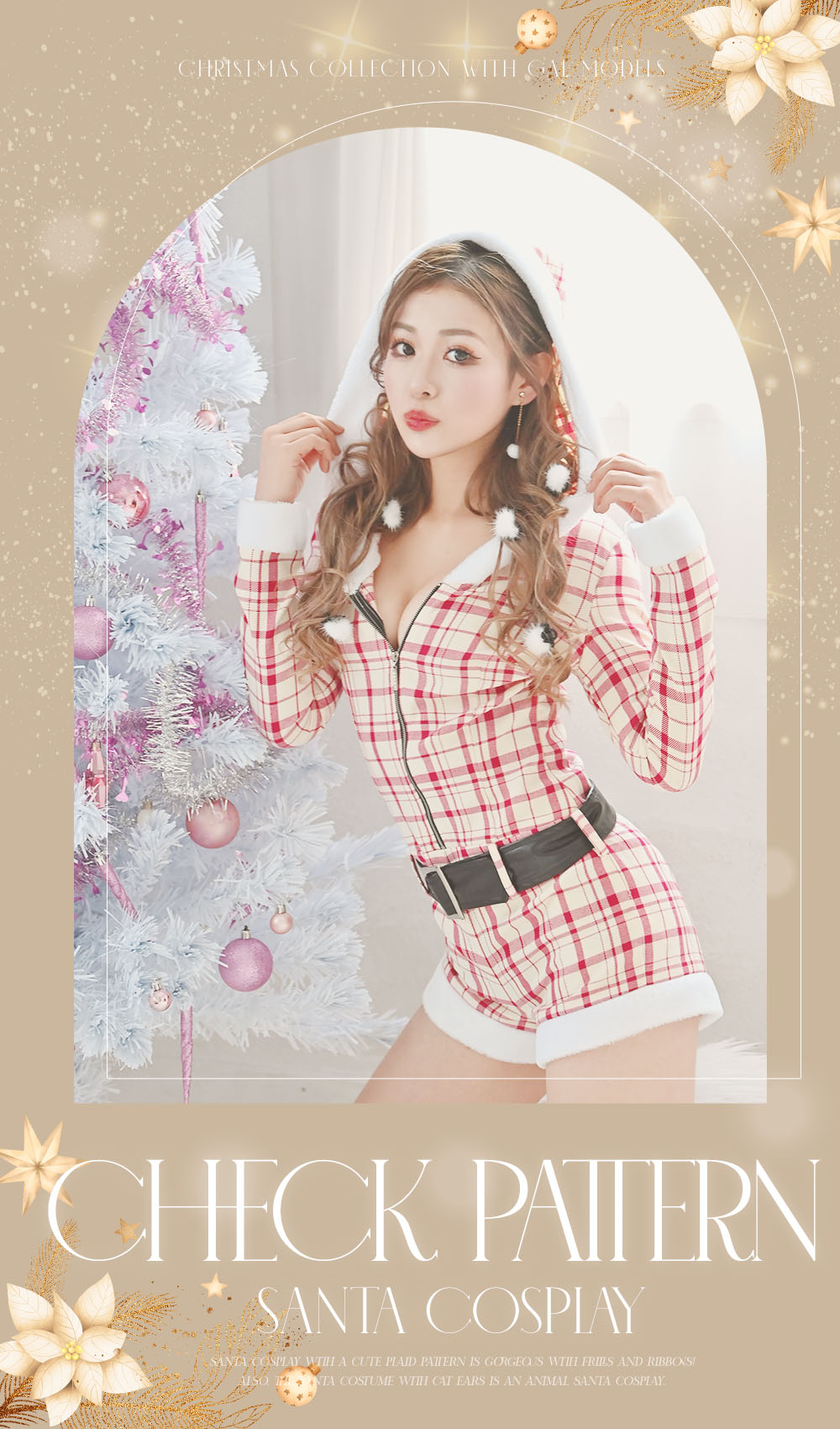 メイドデザインがあざとかわいいギャルサンタコス♡さらにチェック柄をあわせて可愛さ大爆発させちゃうサンタコスプレ♡