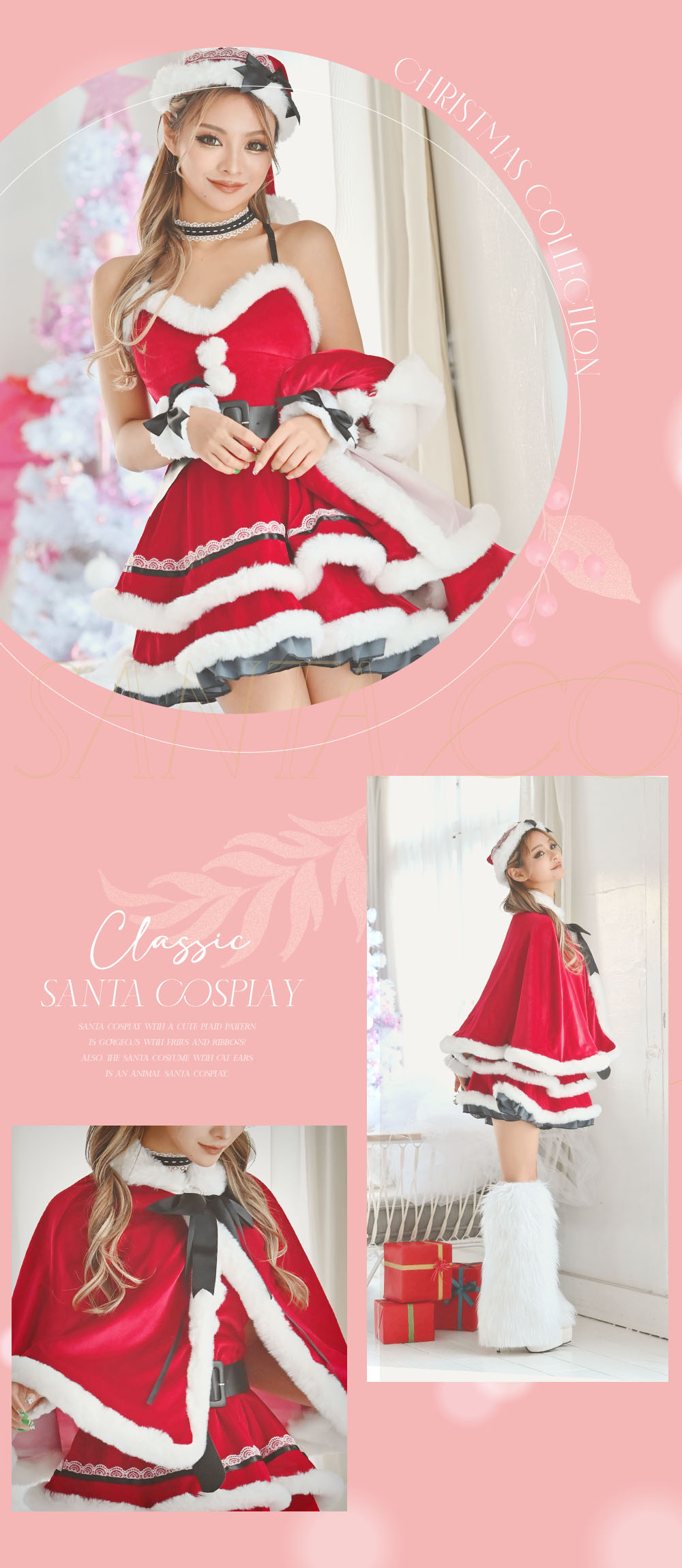 2WAYで着れちゃうケープ付きサンタコスプレ♡体型カバーもできちゃうサンタコスプレはテーマパークでも大活躍するの間違いなしのギャルサンタコスプレ♡
