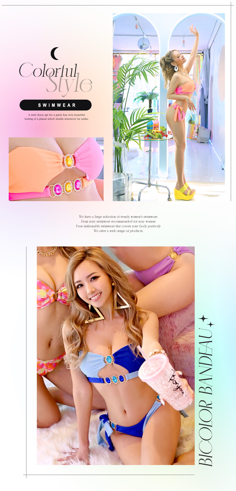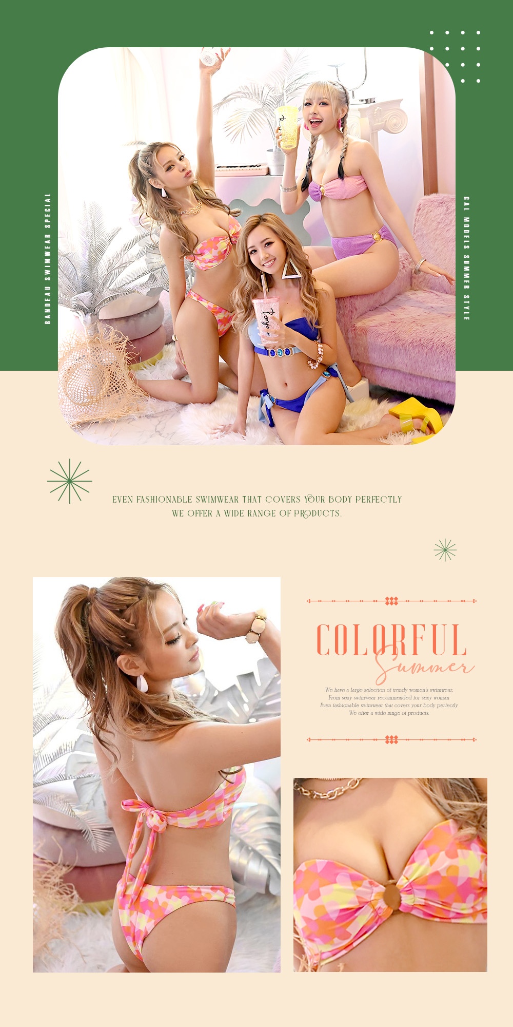 item no. 508549ギラギラビジューとネオンカラーの配色が派手ギャル宣言間違いなしのバンドゥ水着♥他にはないインポートデザインのギャム水着はとことん映えたいギャルは必見!