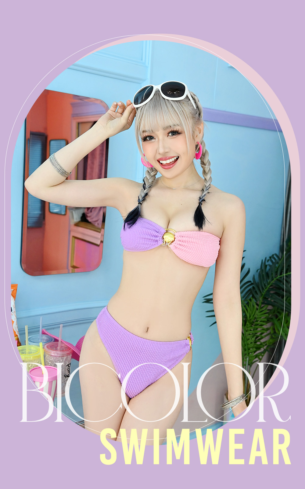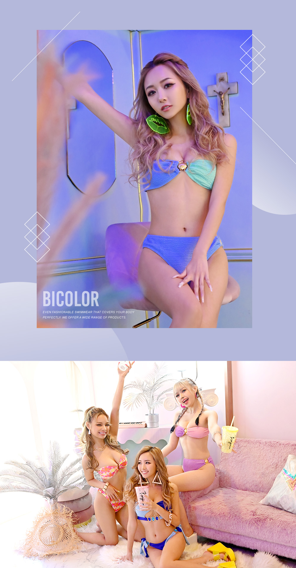 item no. 508585シェルデザインとバイカラーデザインがギャルみが強くてかわいいバンドゥ水着!あまりないバイカラーの色味は友達とお揃いで着用してさらに可愛さアップするギャル水着♡