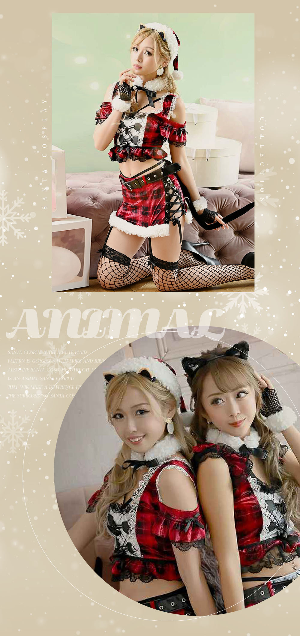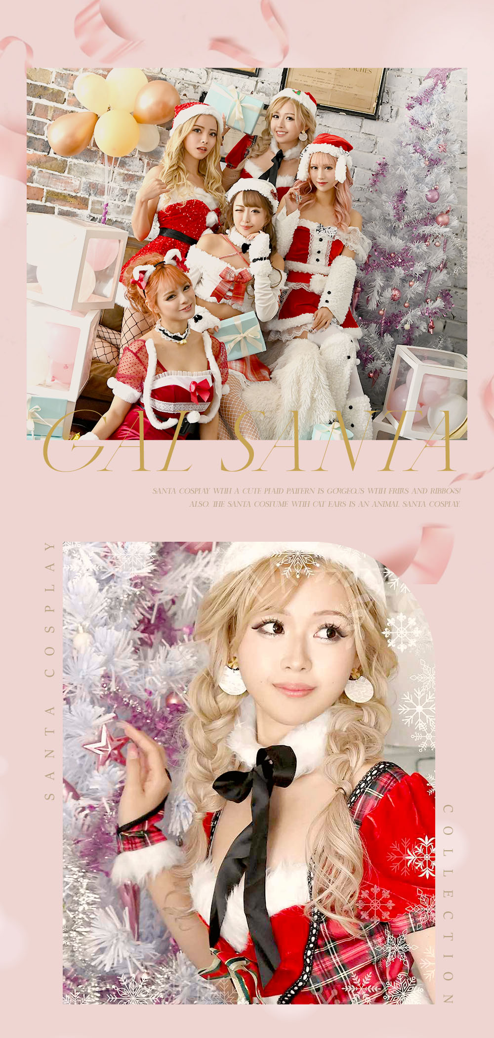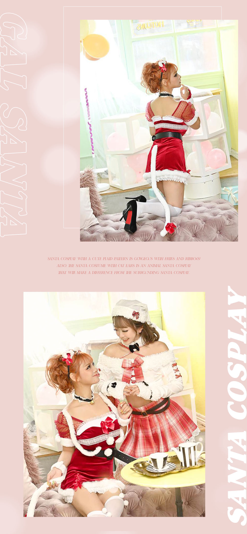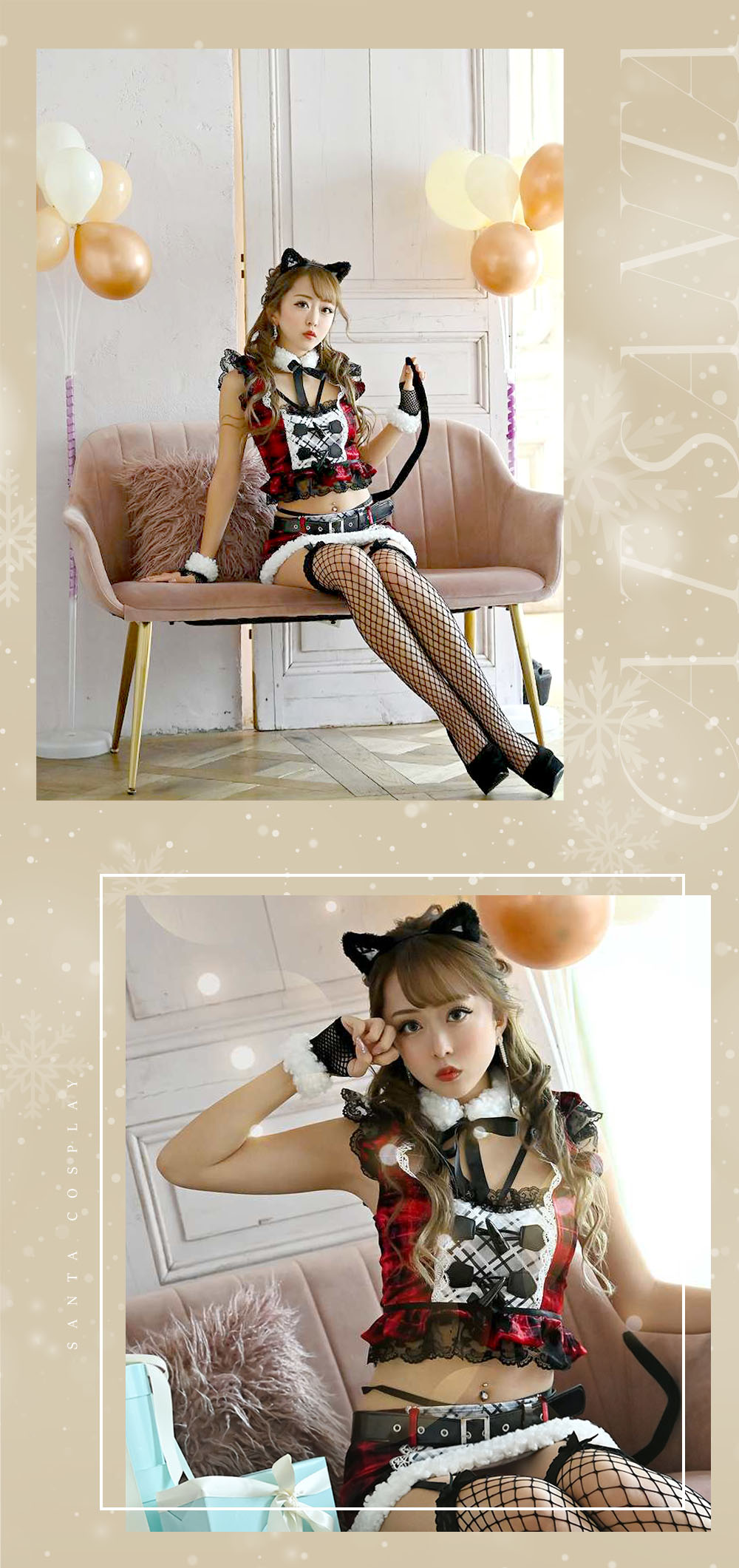 チェック柄と猫耳が超可愛い!友達とお揃いで着用して誰よりも目立ちゃお♥今までなかったサンタコスプレはクリスマスイベントは勿論おうちサンタパーティーでもおすすめ!