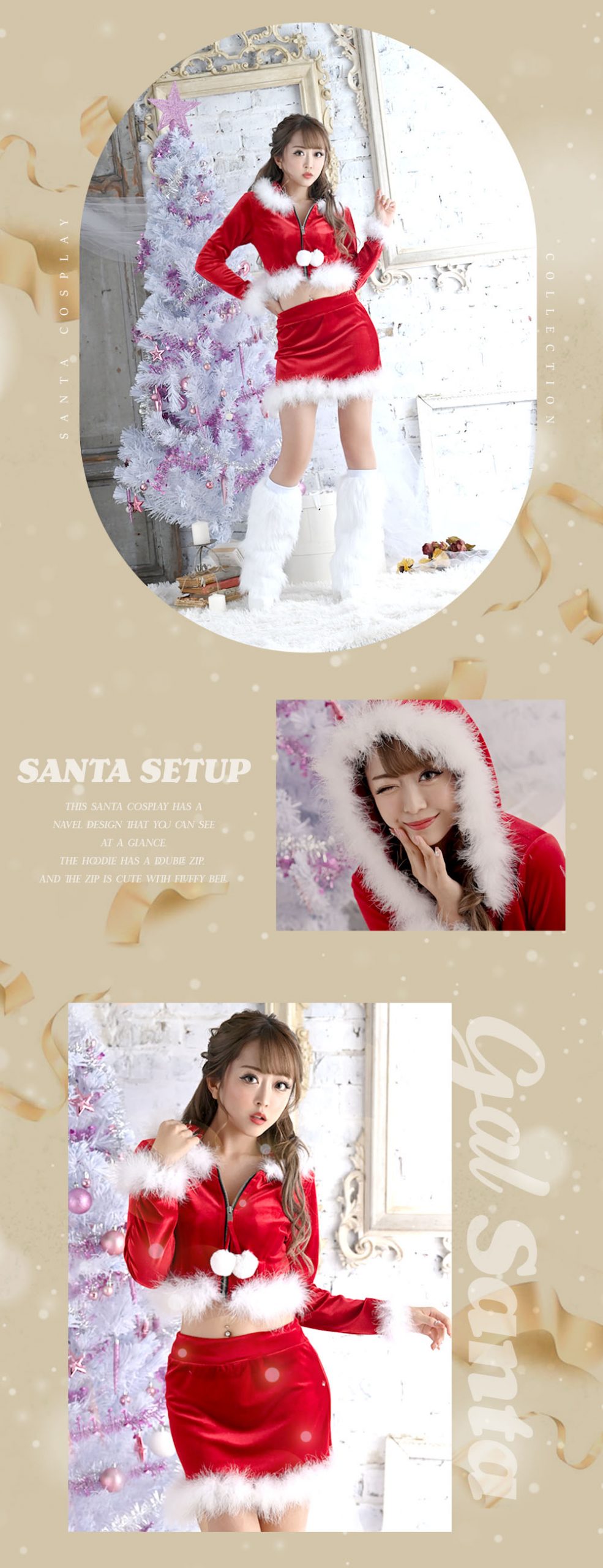 セットアップでへそ出しスタイルが叶うサンタコスプレ♥ちらっと見えるお腹がお客様の視線を集めちゃう!フードを被ってあざと可愛く画面映えを狙っちゃお♡