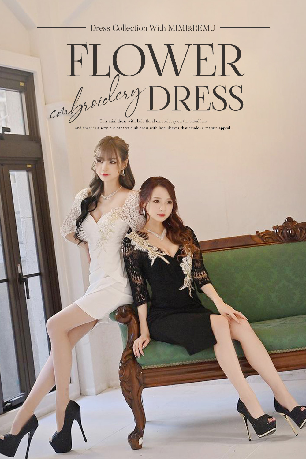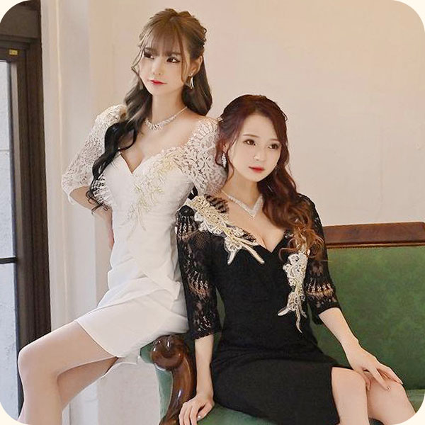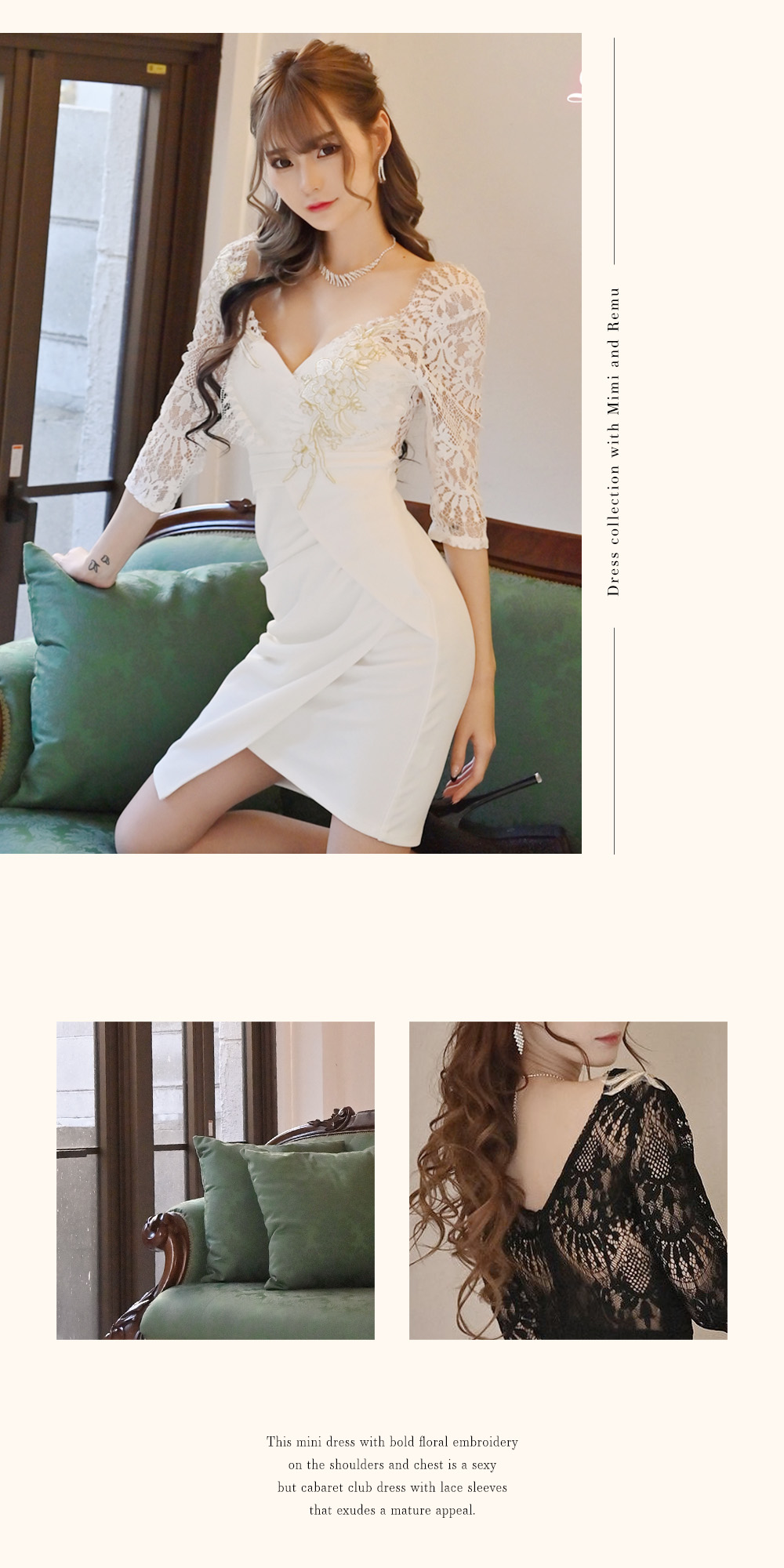 上品なレース袖と刺繍を組み合わせた大人の色気を醸し出す♡男心をそそらせる1着です♥